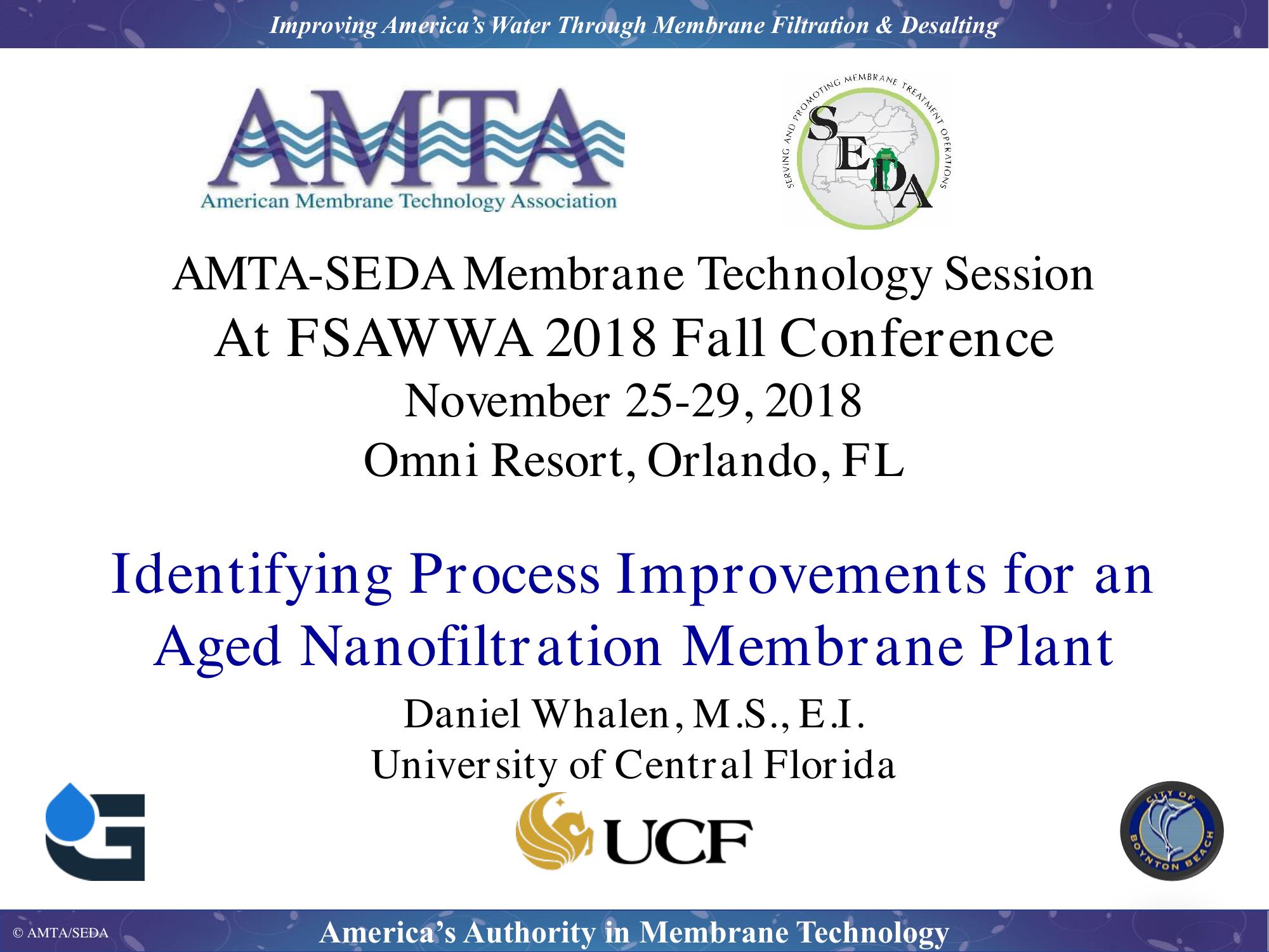 This presentation discusses efforts by the University of Central Florida to assist the City of Boynton Beach in a review of their Nanofiltrations membrane plant activity. There is an assessment of pretreatment, the membrane process and post treatment with recommendations.