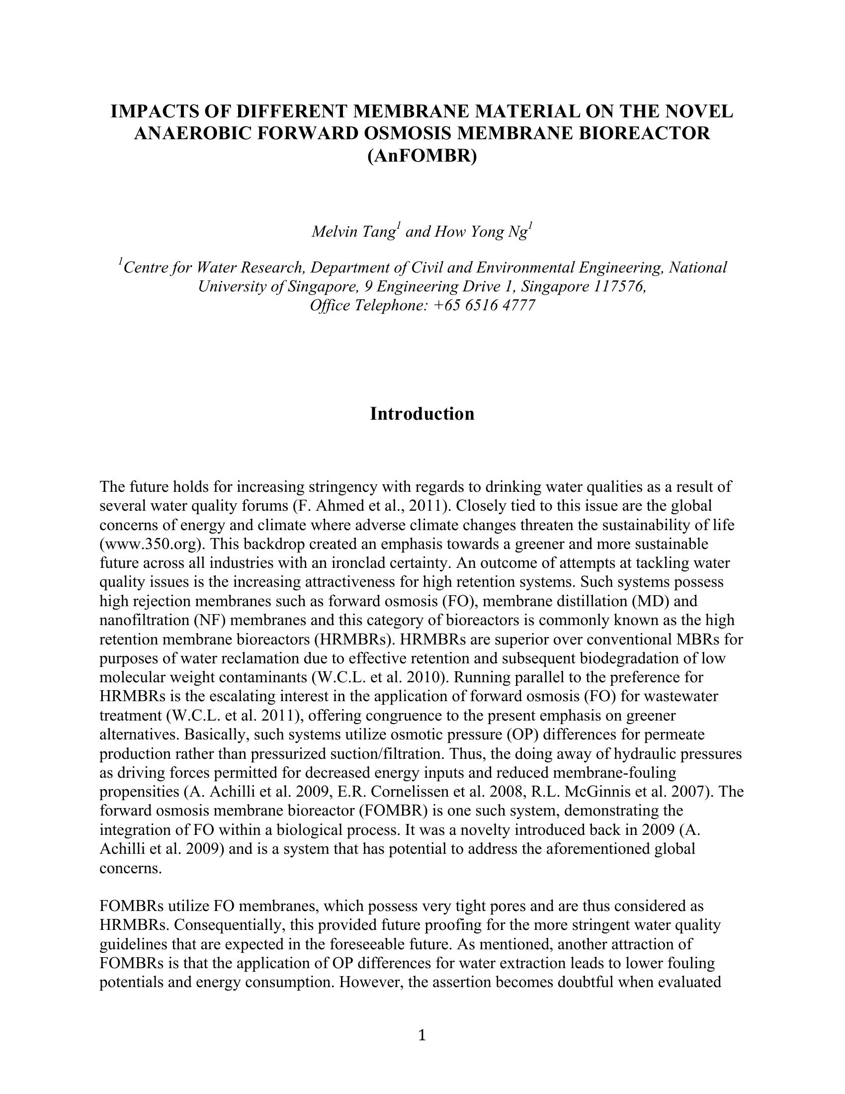 | Keywords | Impacts, Anaerobic, Forward Osmosis |