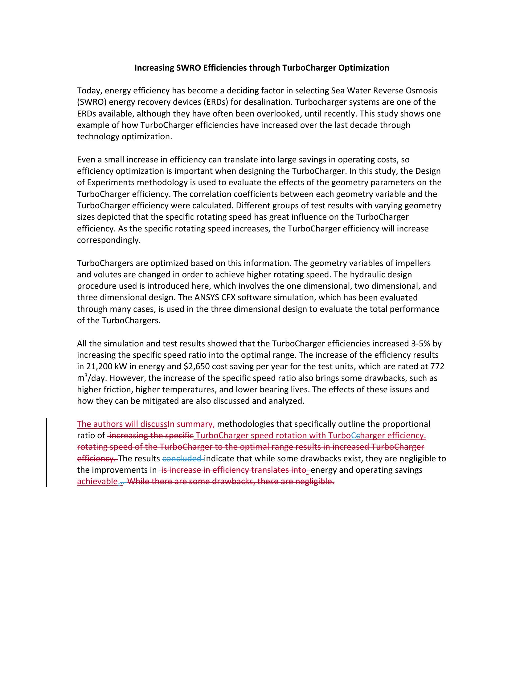Increasing SWRO Efficiencies through Turbocharger Optimization