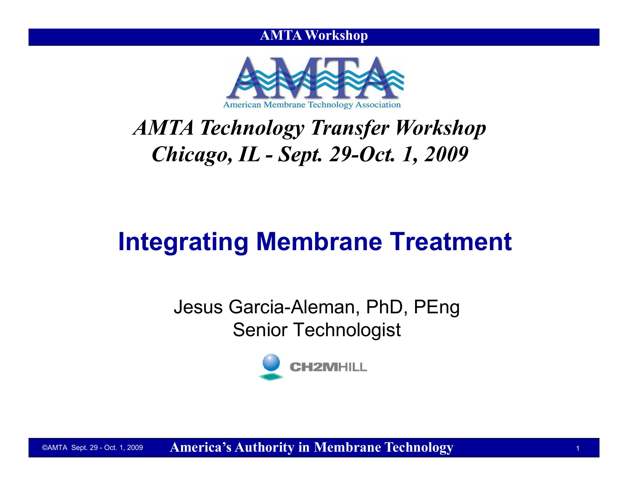 A detailed powerpoint presentation covering membrane filtration plant process design, facility design, hydraulics, chemical cleaning, construction and start-up and operations and maintenance.
