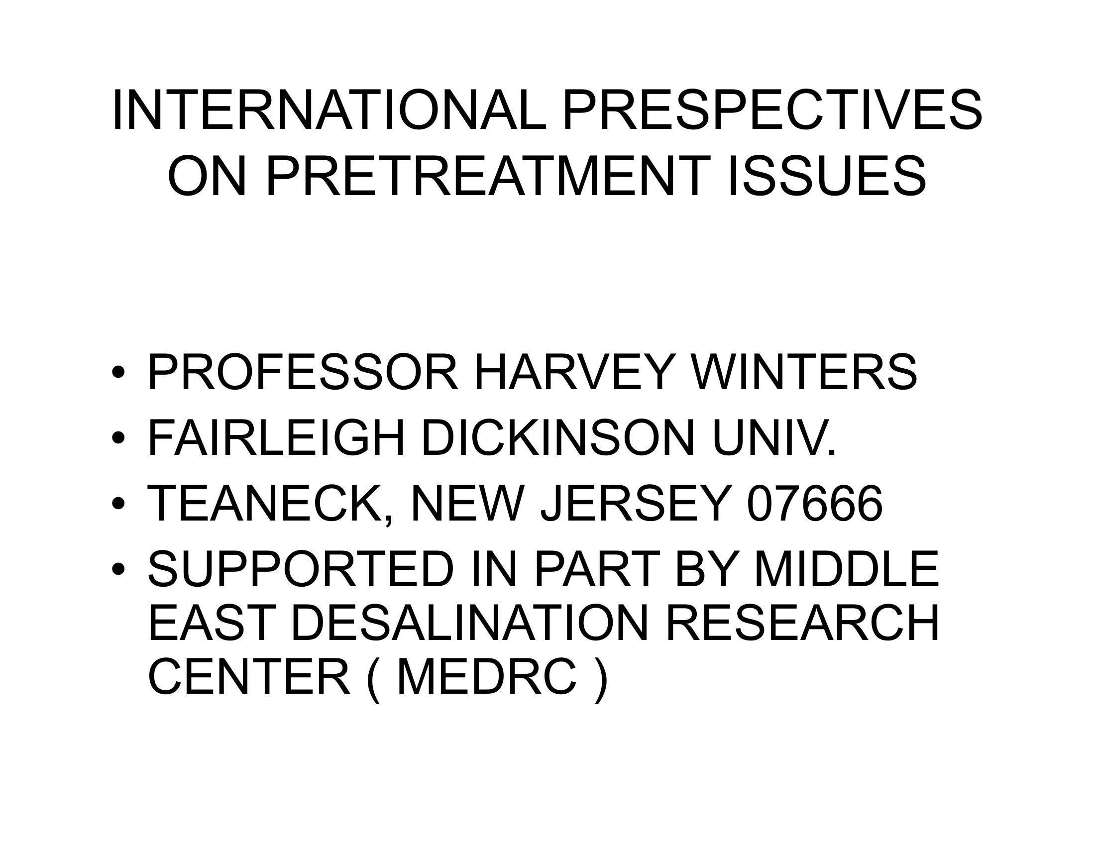 An international look of seawater reverse osmois pretreatment applications. The issues of membrane scaling and fouling are addressed as well as insight on the need for further research on the efficacy of microfiltration and ultrafiltration for pretreatment.
