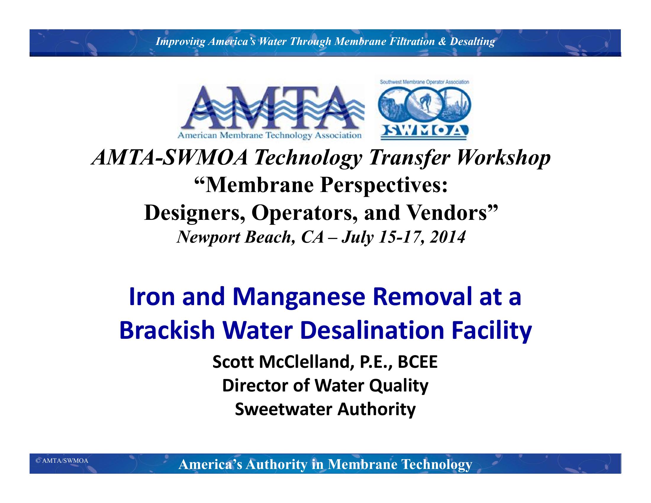 Iron and Manganese Removal at a Brackish Water Desalination Facility