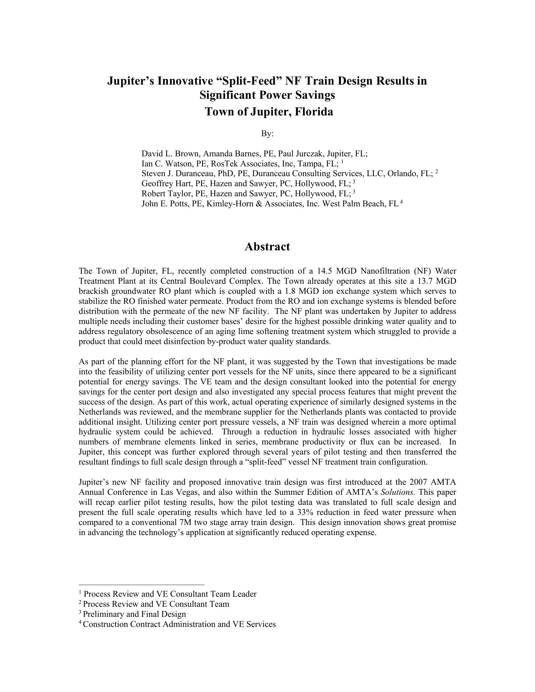 | Keywords | Split Feed / Center Port, nanofiltration, town of Jupiter |