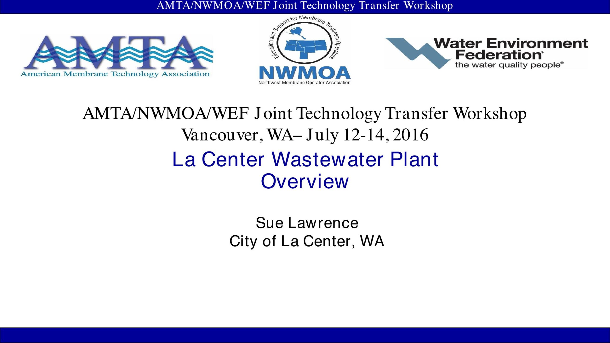The City fo La Center is a Membrane Bioreactor Wastewater Treatment Plant with bilogical nutrient removal. The presentation will be a brief history and overview of the plant prior to a tour of the facility. Discussion about the type of equipment and the operation of the facility ove r the 6 year period the plant has been in operation.