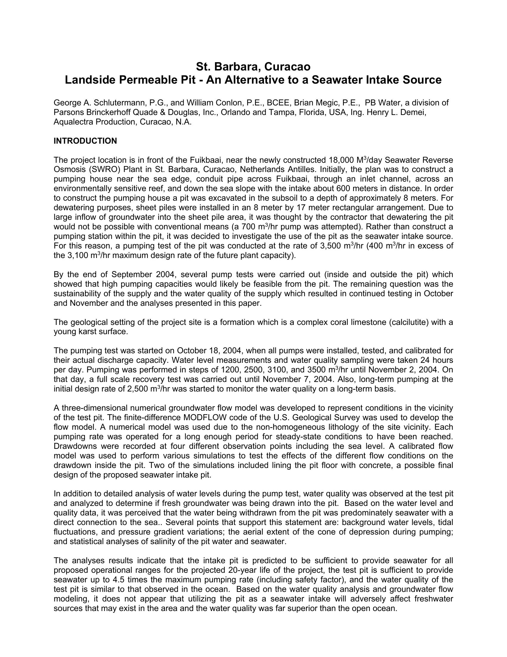 Landside Permeable Pit – An Alternative to a Seawater Intake Source