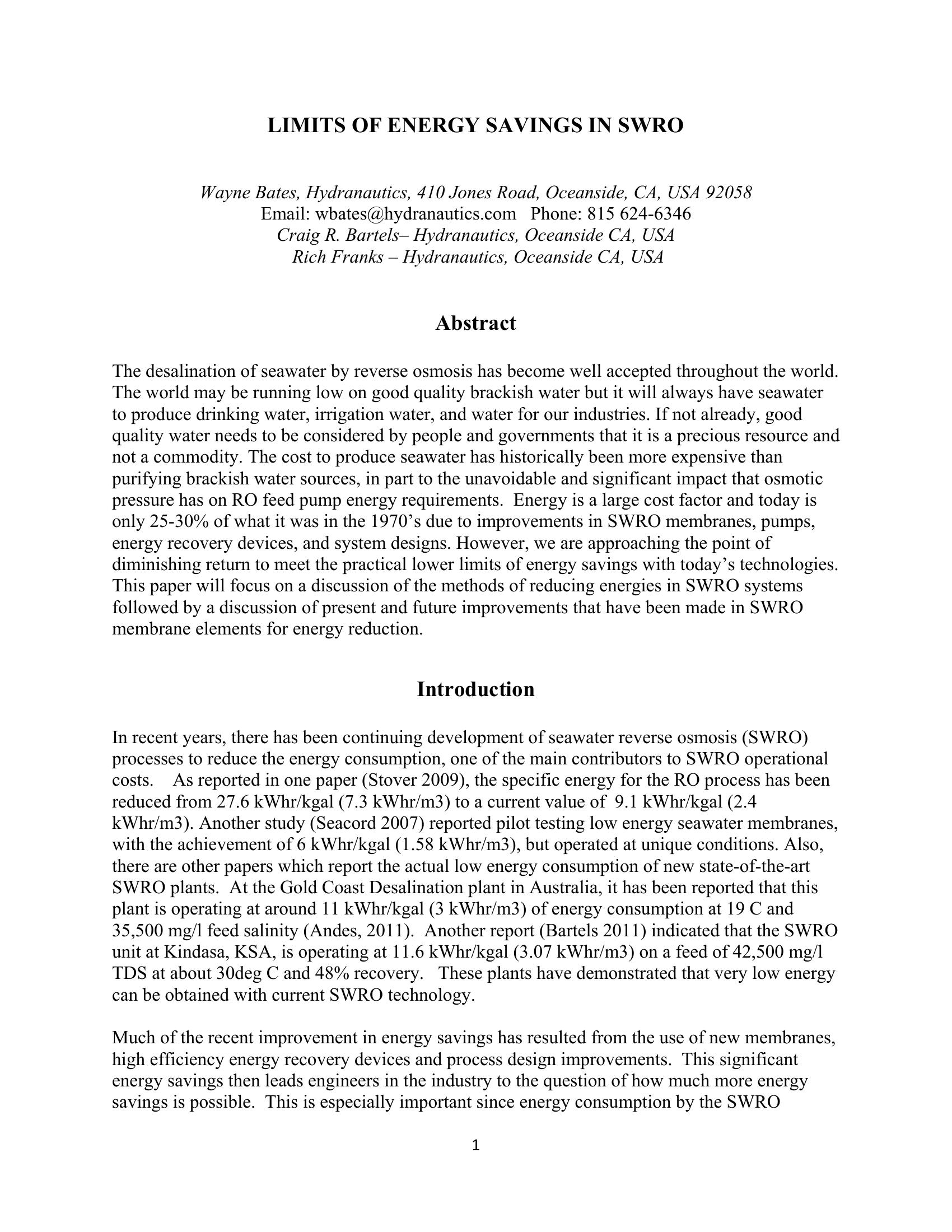 | Keywords | Limits, Energy Saving, Seawater RO |