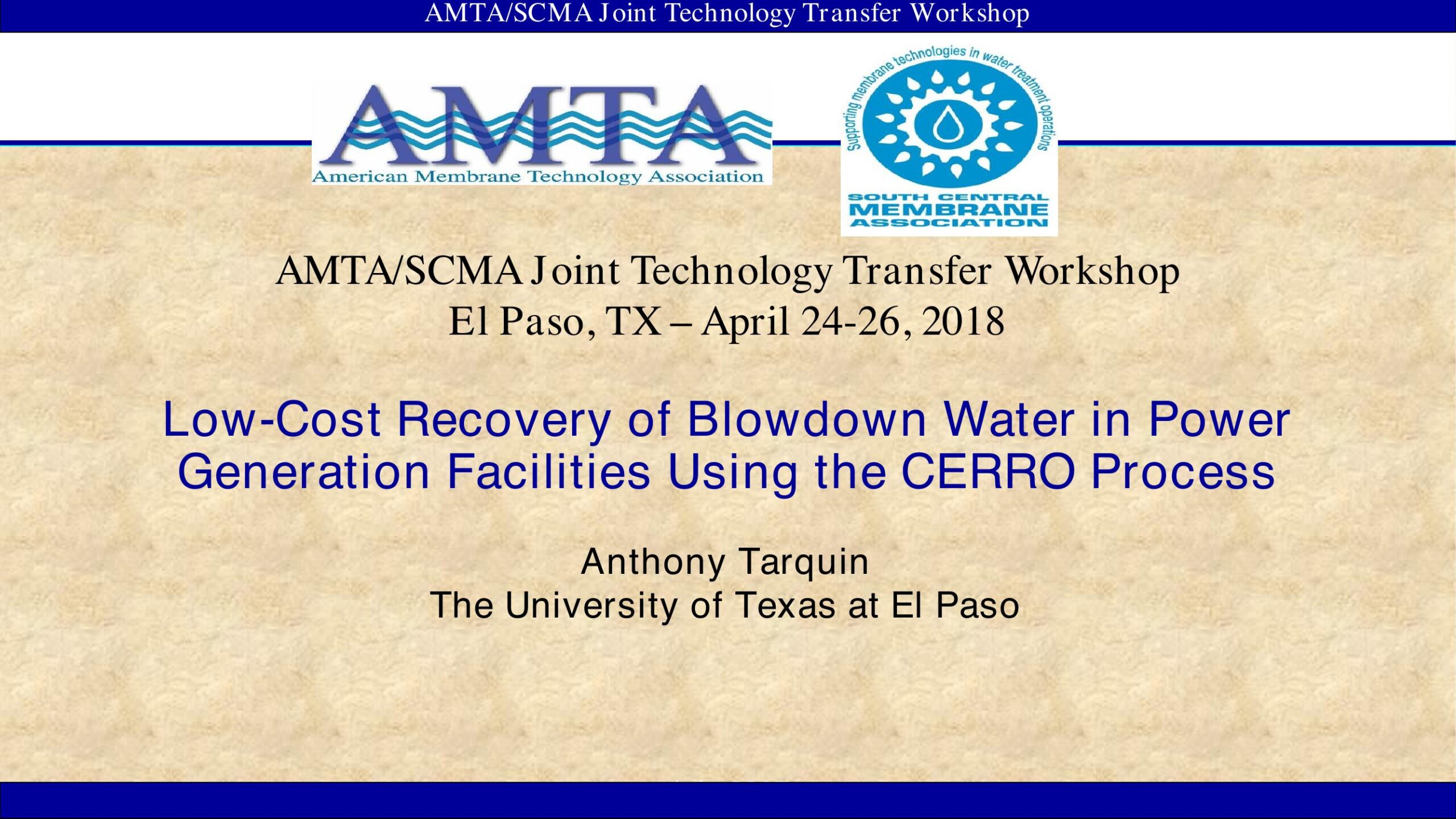 Low-Cost Recovery of Blowdown Water in Power Generation Facilities Using the CERRO Process