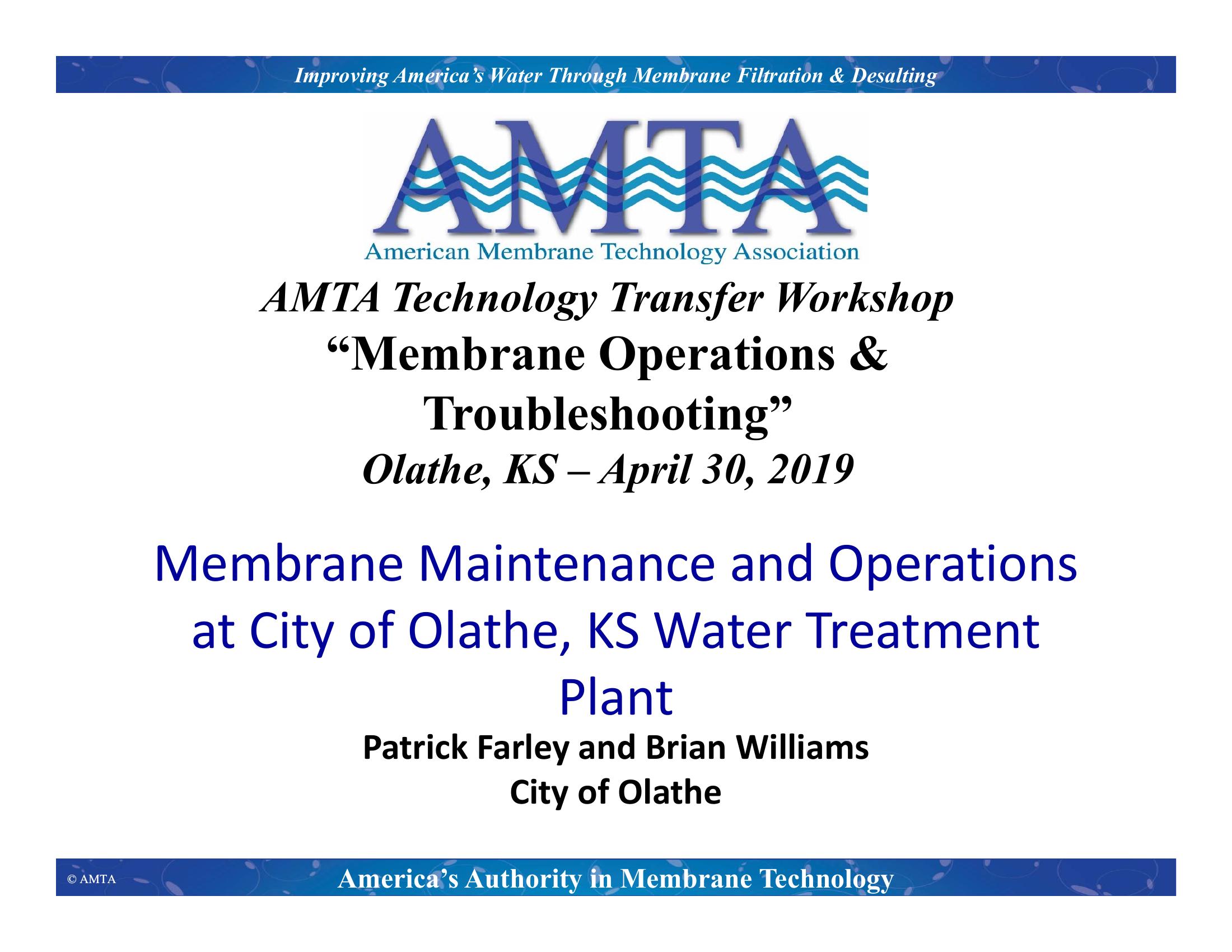 The presentation will cover online and offline Maintenance programs for the Pall Membrane Filtration System. It will also cover troubleshooting moisture in the air operated valves. It will briefly cover the research and potential fixes for the short run times on the Membranes due to fouling in the summer of 2017.