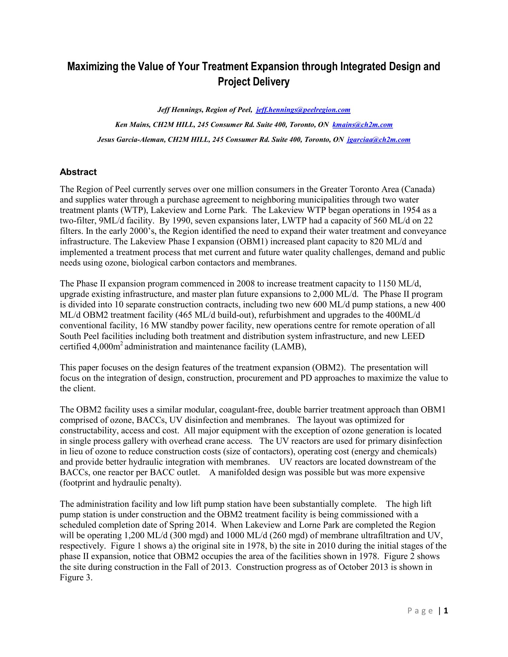 This paper presents streamlined and proactive approaches to reduce capital costs while maximizing the value of a membrane water treatment expansions to rate payers.
