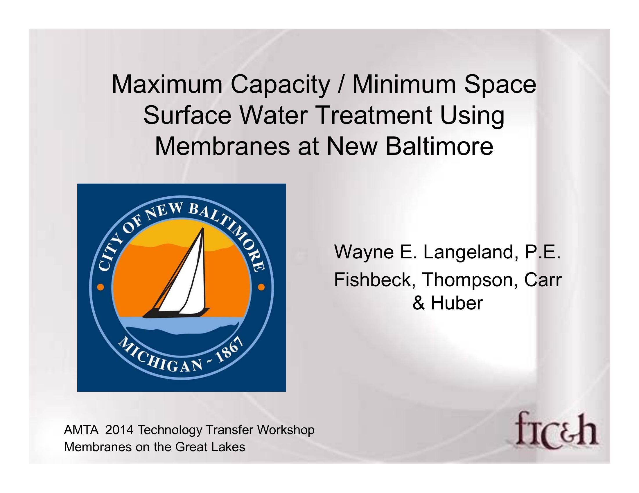This presentation discusses the conversion of the City of New Baltimore Water Treatment Plant (WTP) from conventional surface water treatment to membrane filtration. The presentation begins with a discussion of the drivers for upgrading and expanding the WTP along with a history of the facility. Next, the water treatment processes are presented along with select design criteria. The presentation concludes with a summary of how existing structures were repurposed to triple system capacity while remaining within the original site area.