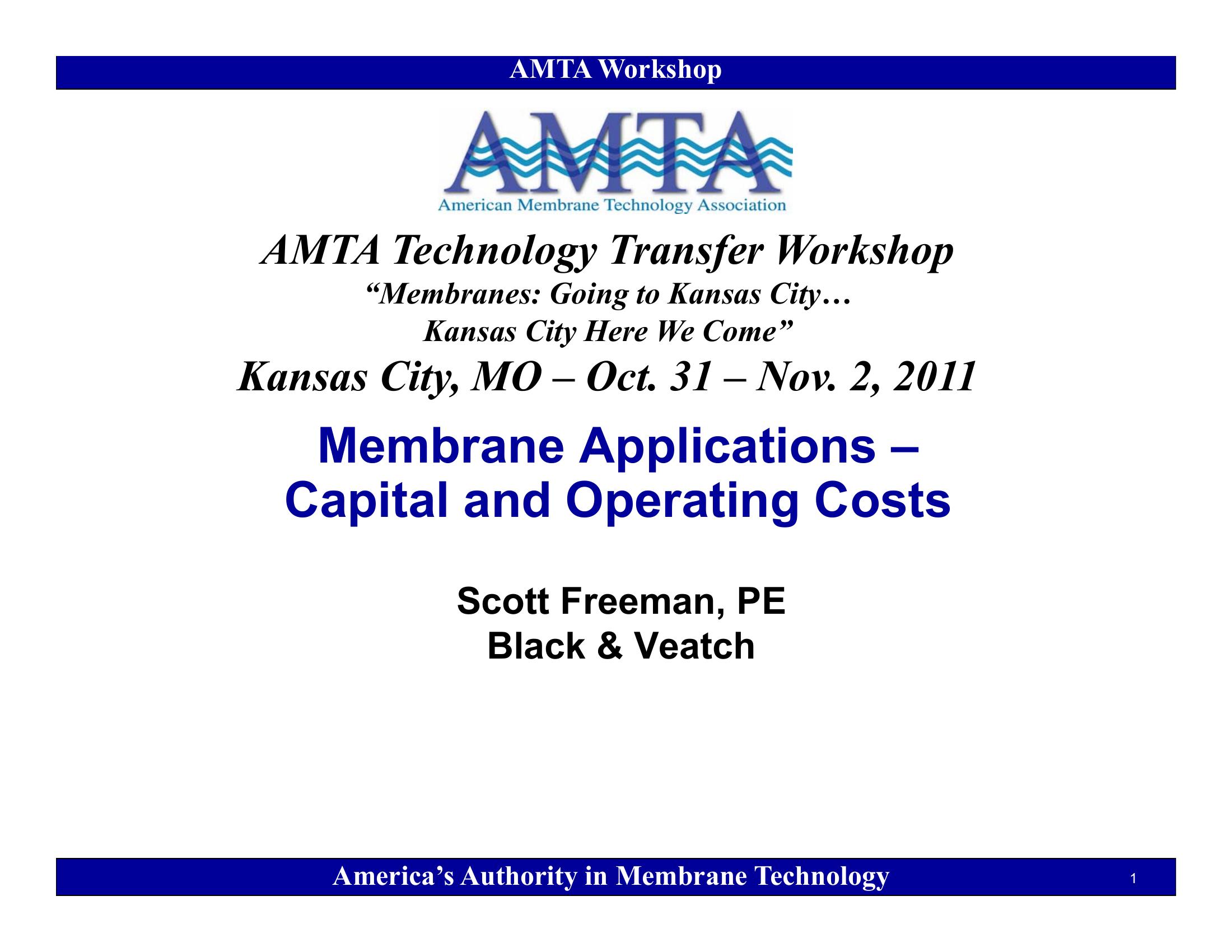This presentation provides an overview of capital and operating costs for microfiltration, ultrafiltration, nanofiltration and reverse osmosis. Caution is given about what is included in the cost calculations and it is emphasized that concentrate disposal should be considered from early stages of the project.
