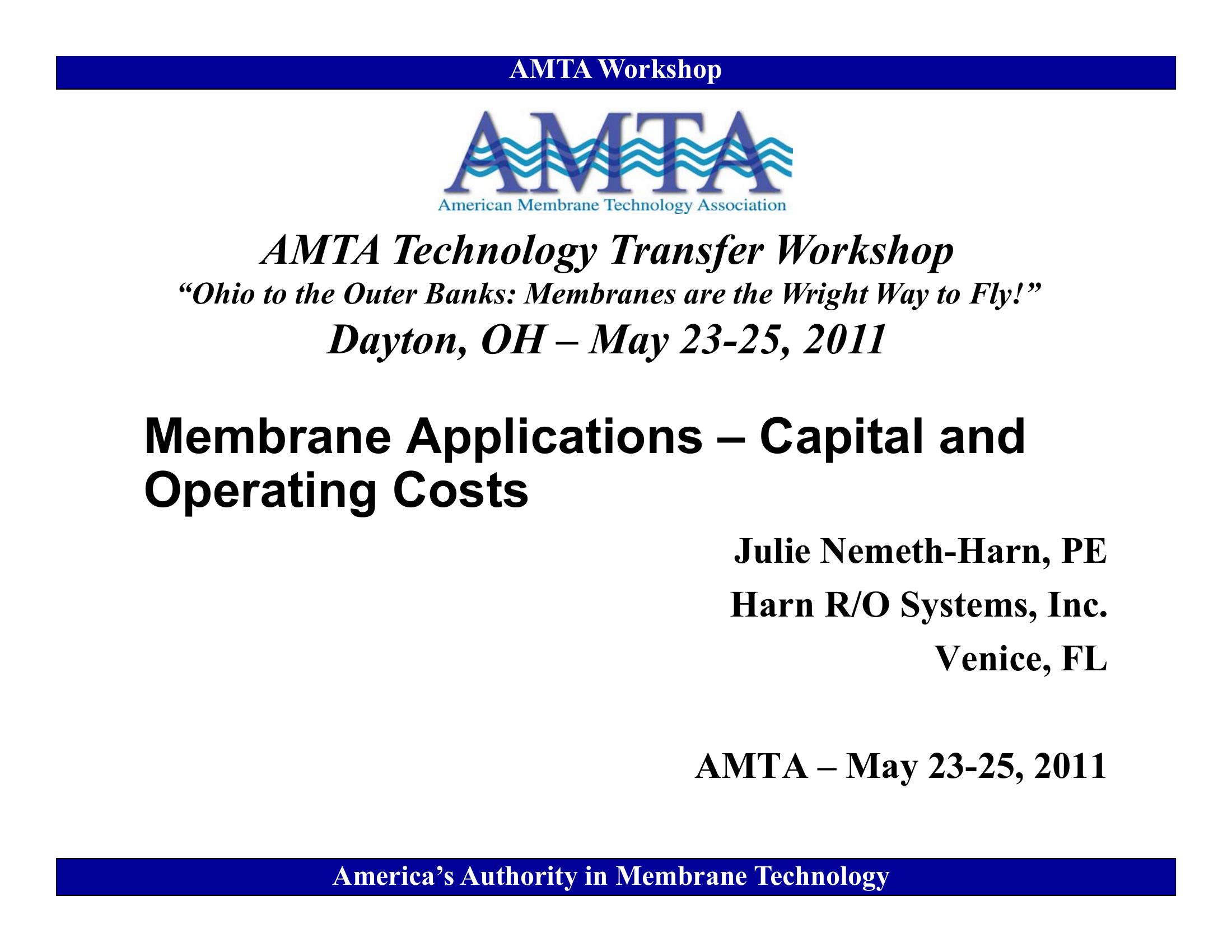 | Keywords | Membrane Capital Costs, Operations and Maintenance Costs |