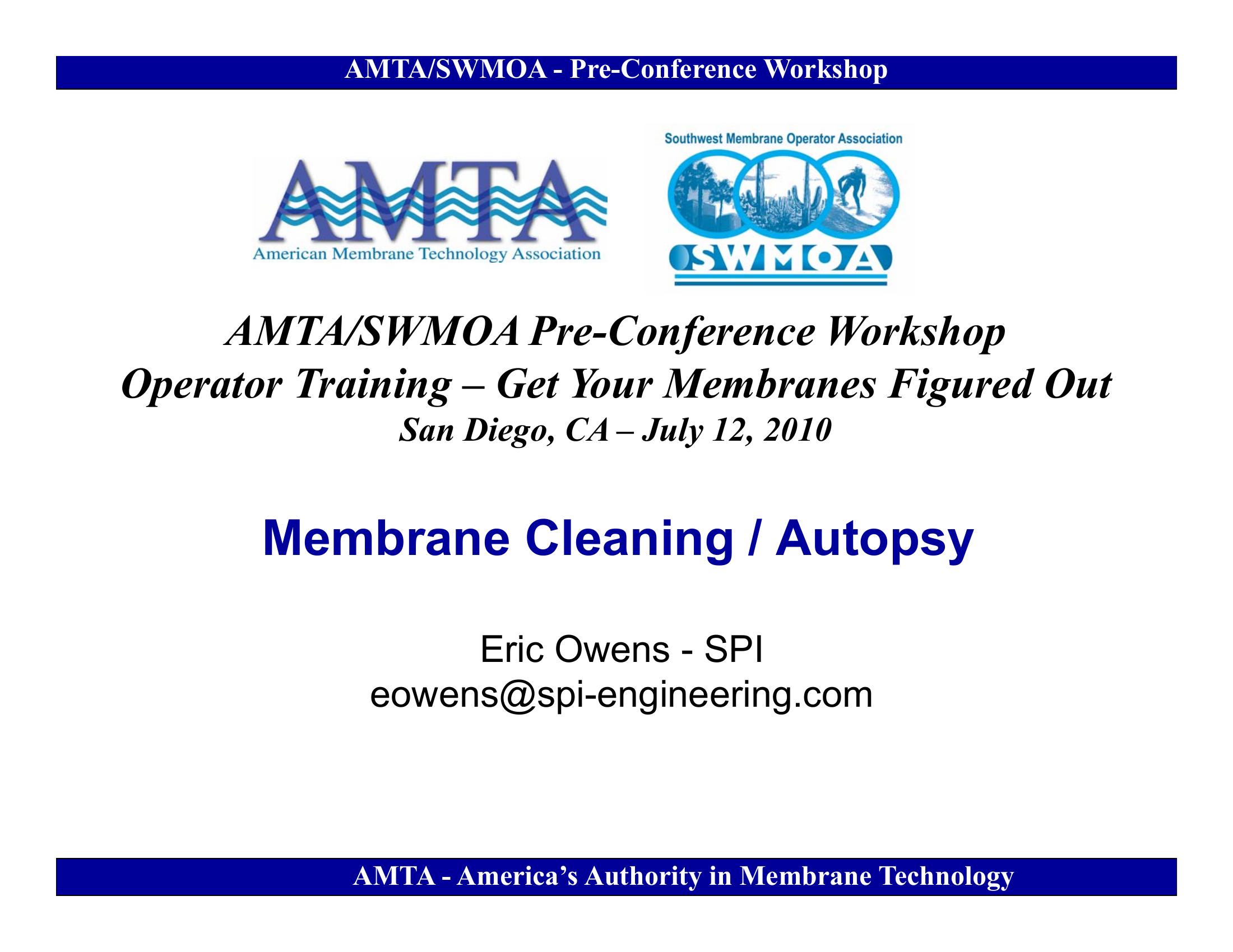| Keywords | Membrane cleaning, autopsy, fouling |