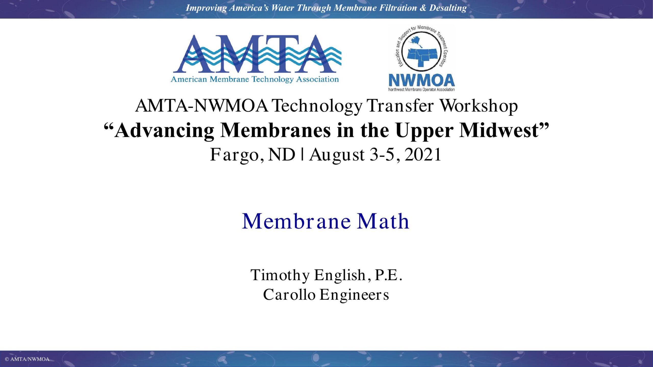 This presentation will introduce basic membrane related terms, concepts and related calculations.