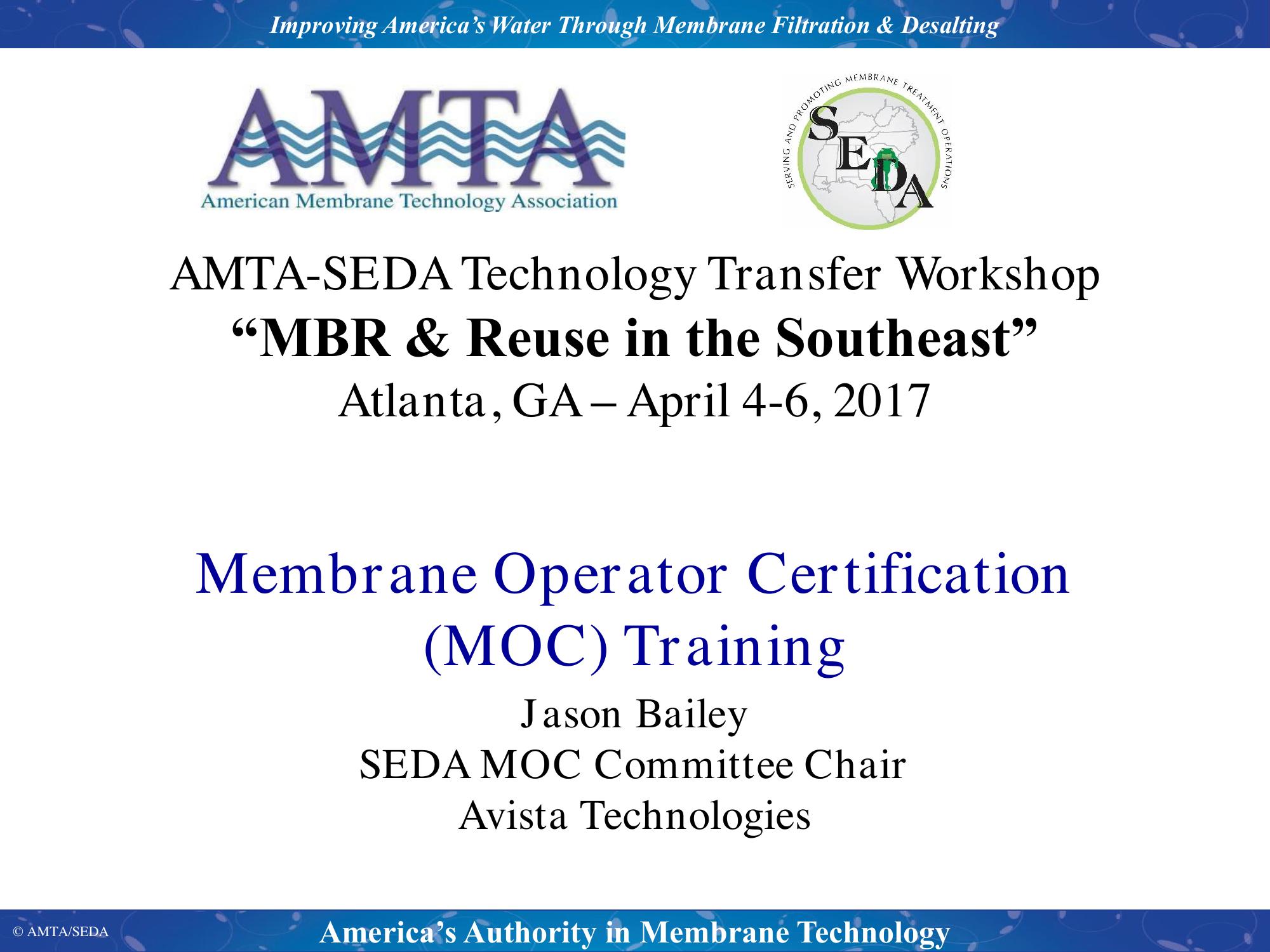 Membrane Operator Certification (MOC) Training