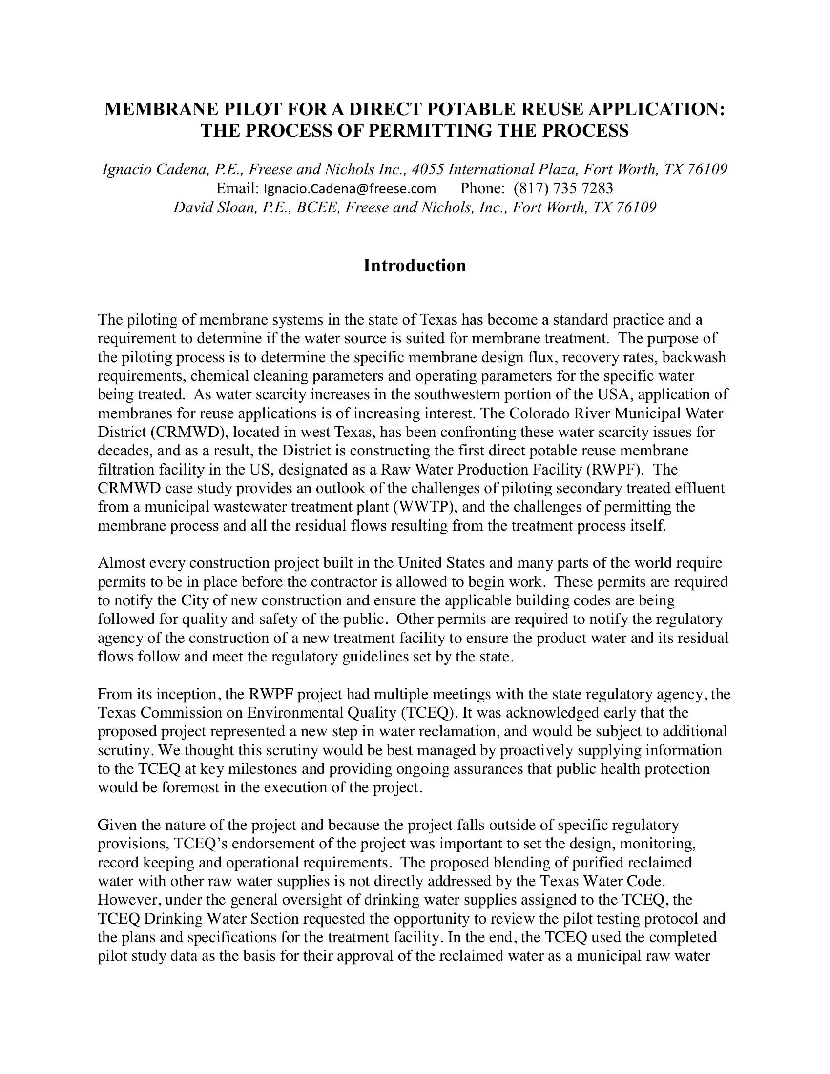 Membrane Pilot for a Direct Potable Reuse Application: The Process of Permitting the Process