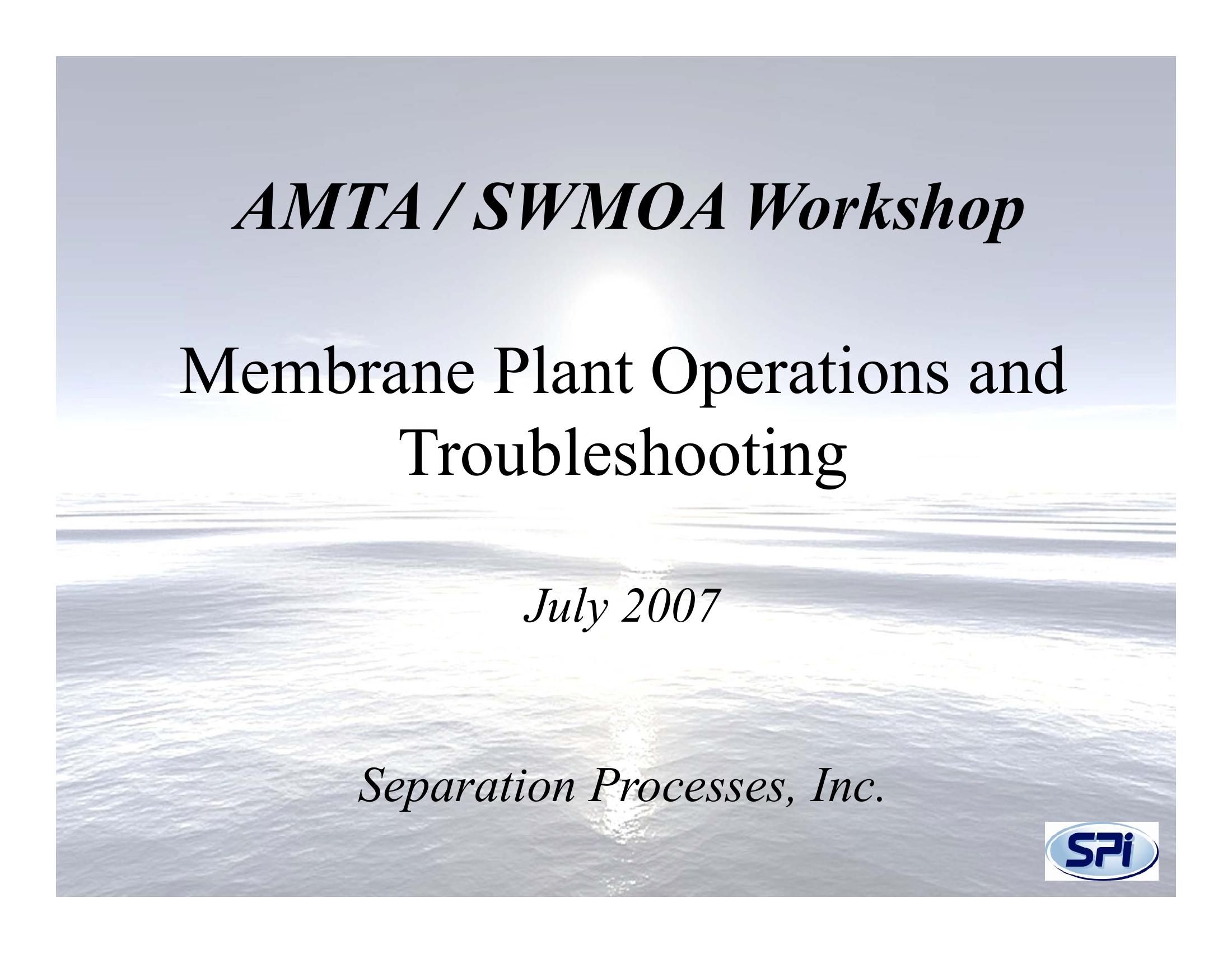 Membrane Plant Operation & Troubleshooting