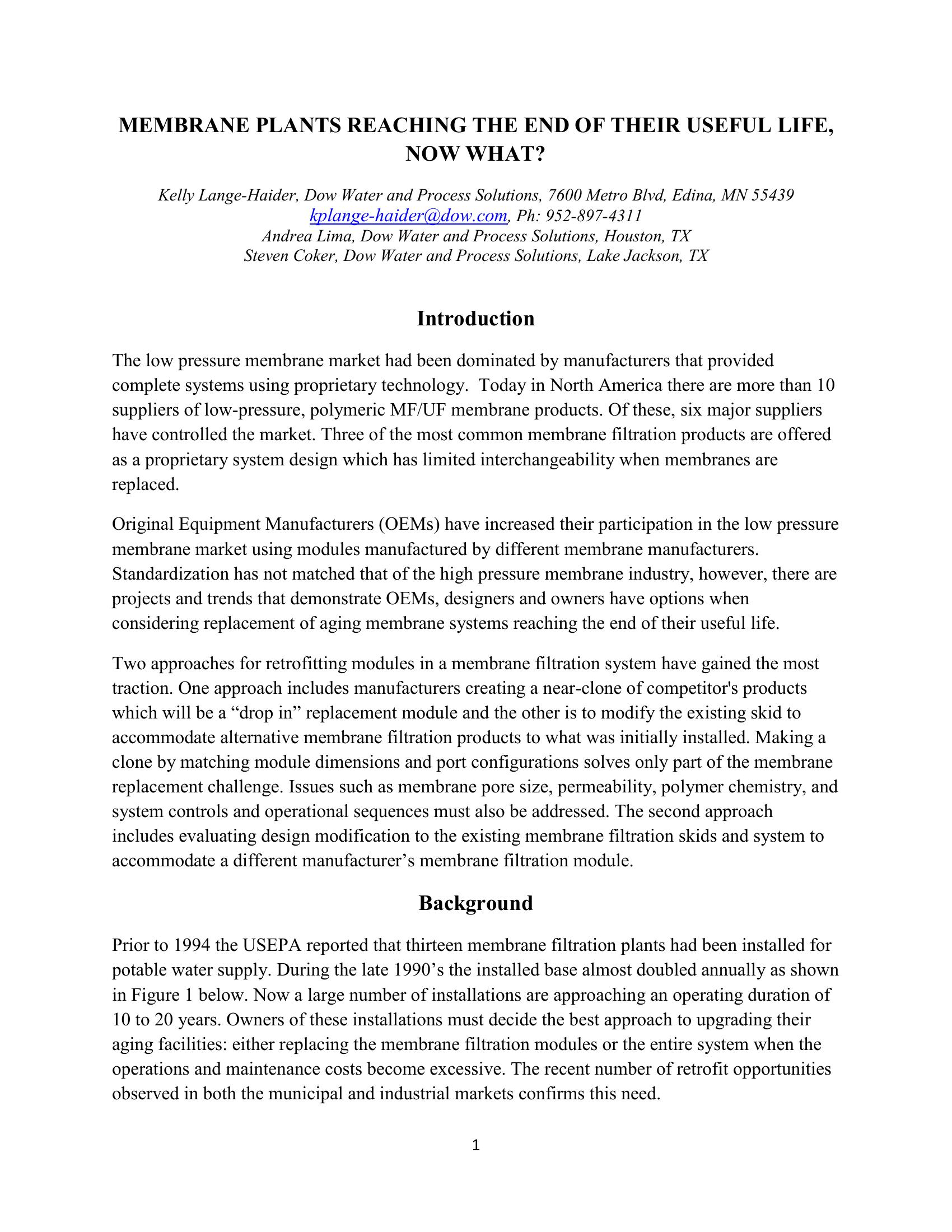 | Keywords | Retrofitting Membranes, Low Pressure Membranes, Skid Design |