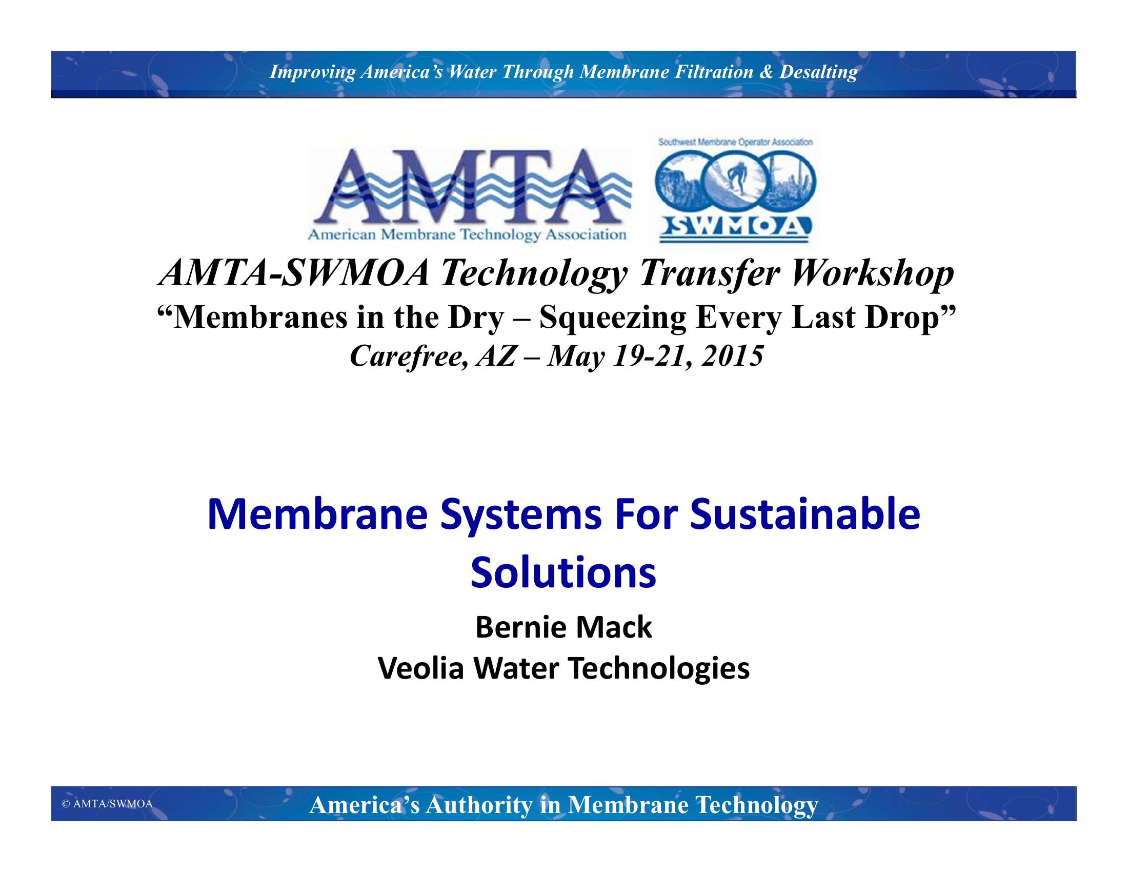 Sustainability or the ability to meet the needs of the present without compromising the ability of future generations to meet their own needs is an important consideration for any project. The need to achieve a sustainable design means that we need to evaluate the circumstances where resource recovery makes the most sense. Membrane systems such as ultrafiltration, reverse osmosis and electrodialysis are extensively used for resource recovery whether for conversion of poor quality water to meet the increasing demands for drinking water, for the improved recovery of energy from anaerobic digesters or for the recharging of aquifers. A membrane based water reuse approach known as “sewer mining” to provide water for secondary uses such as irrigation, cooling water and toilet flushing in a Sydney Australia office complex has been installed and in operation for several years. The operating experience with this system will be presented. A variety of system approaches to achieve high water recovery each approach needs to consider the water source as one approach will have advantages over another depending on the raw water quality. Operating experience with a variety of membrane system design for high water recovery to zero liquid discharge will be presented.
