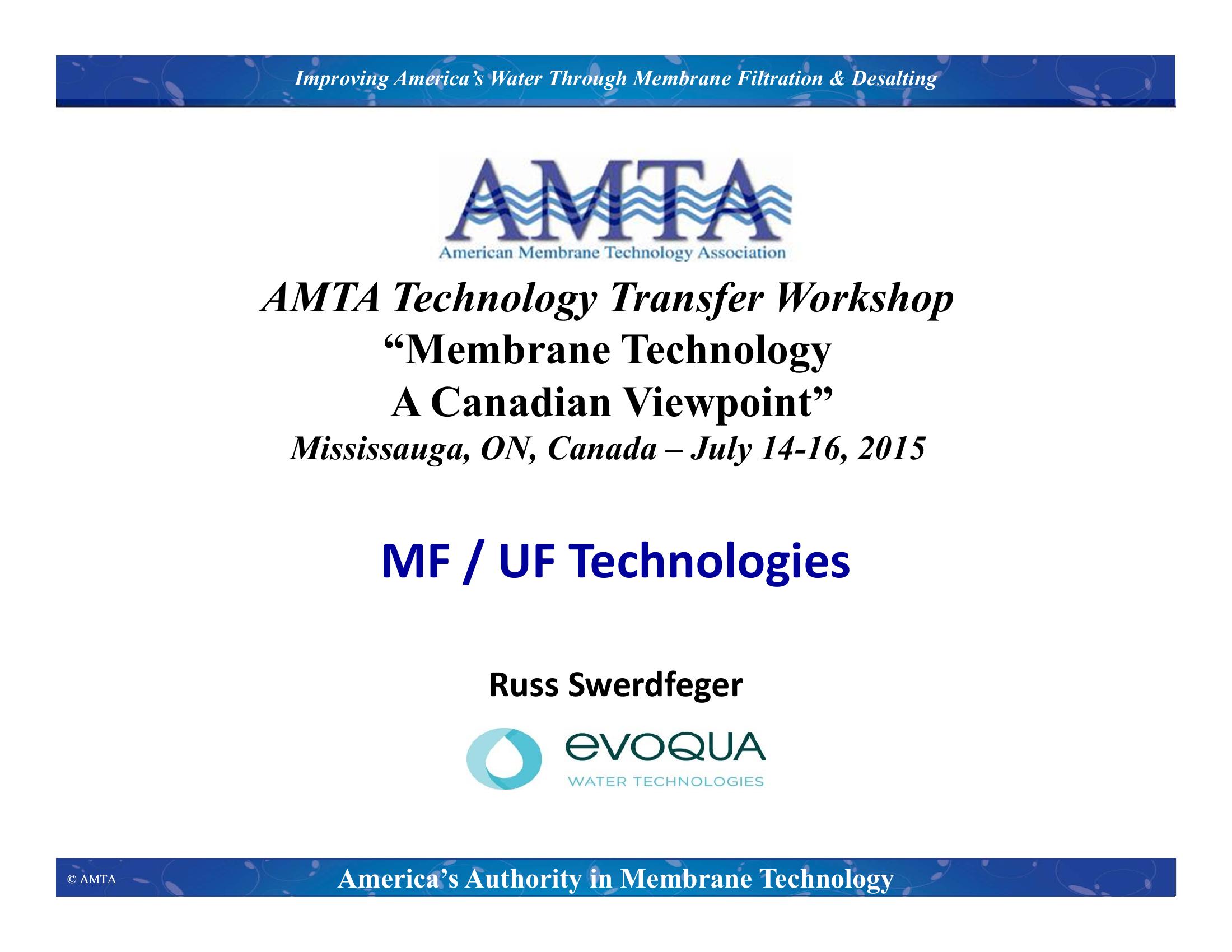 Presentation will focus on the basics of MF/UF Membrane filtration. Topics will include the basic types of membranes, materials of construction, glossary of terms used, and basic application parameters for consideration by someone seeking to apply MF/UF technology.