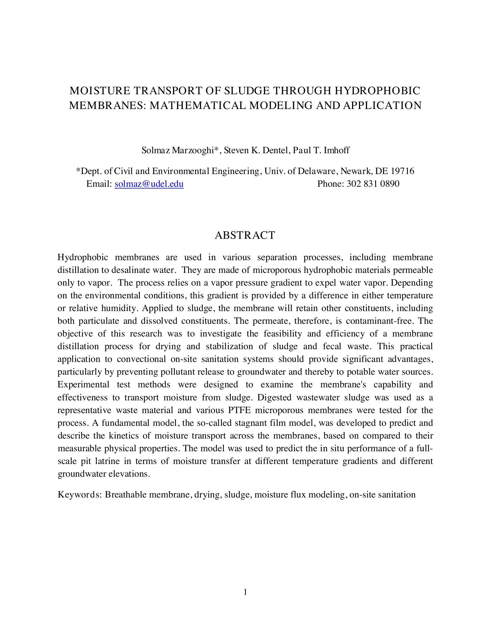 | Keywords | Breathable membrane, drying, sludge, moisture flux modeling, on-site sanitation |