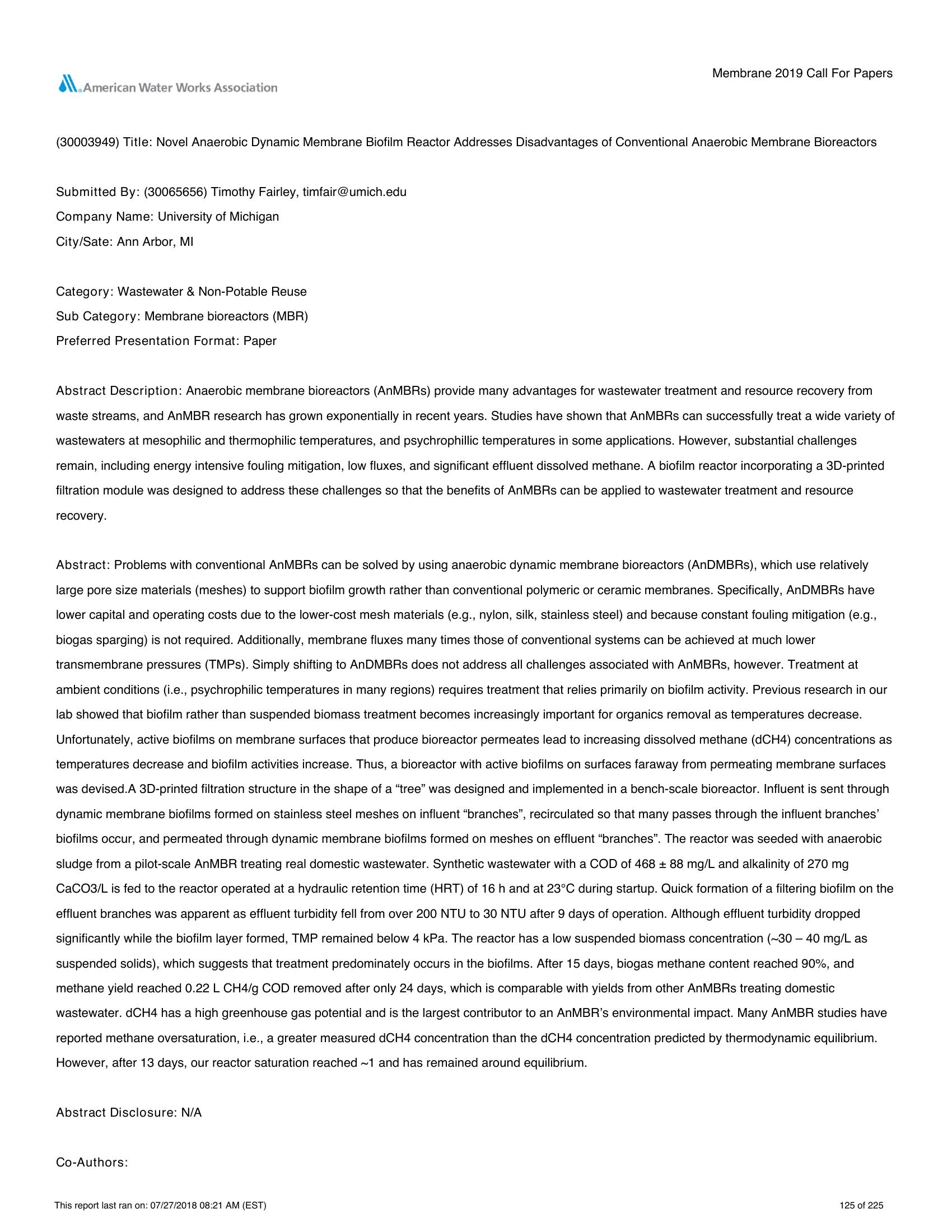 | Keywords | Dynamic Membrane, Dissolved Methane, Anaerobic Membrane Bioreactor |