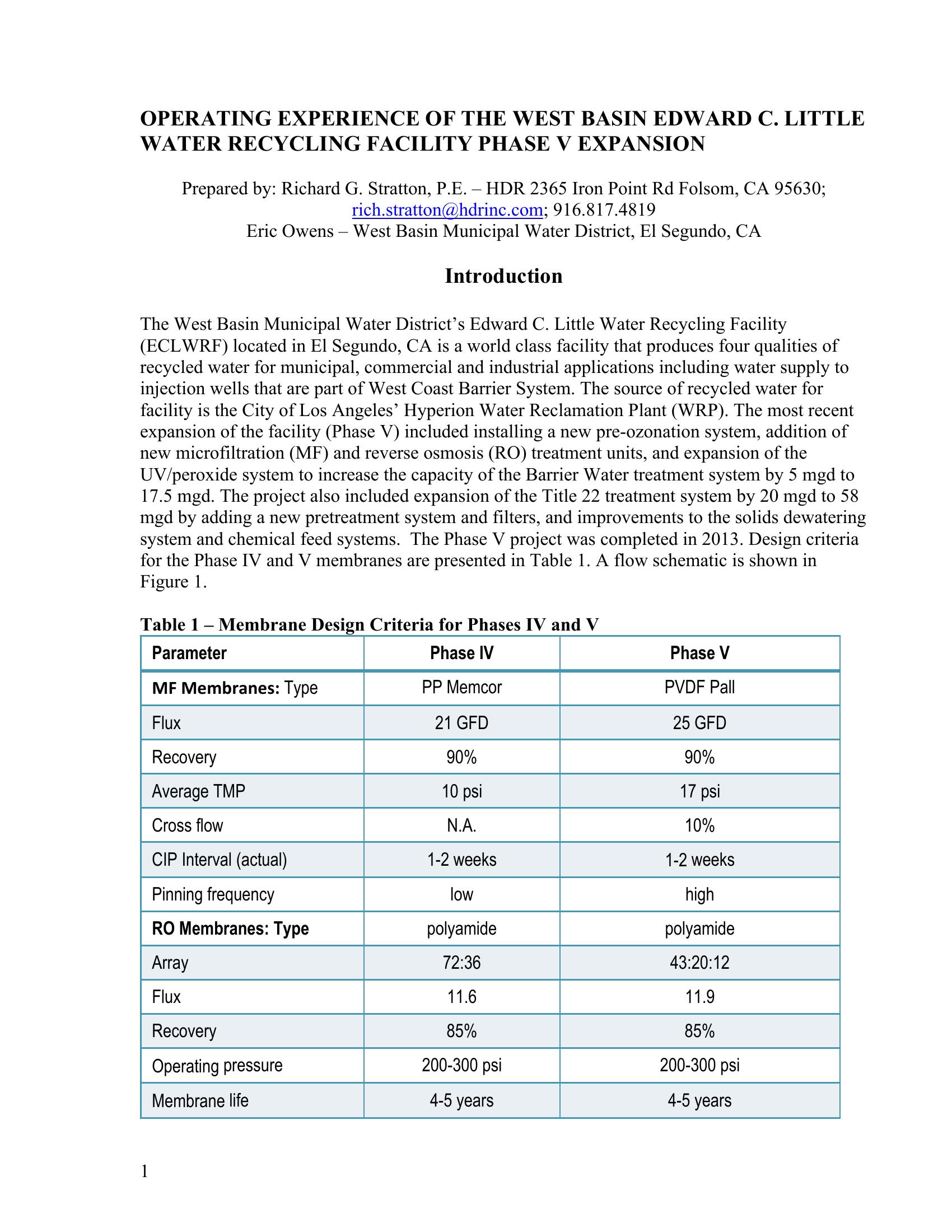 Operating Experience of the West Basin Edward C. Little Water Recycling Facility Phase V Expansion