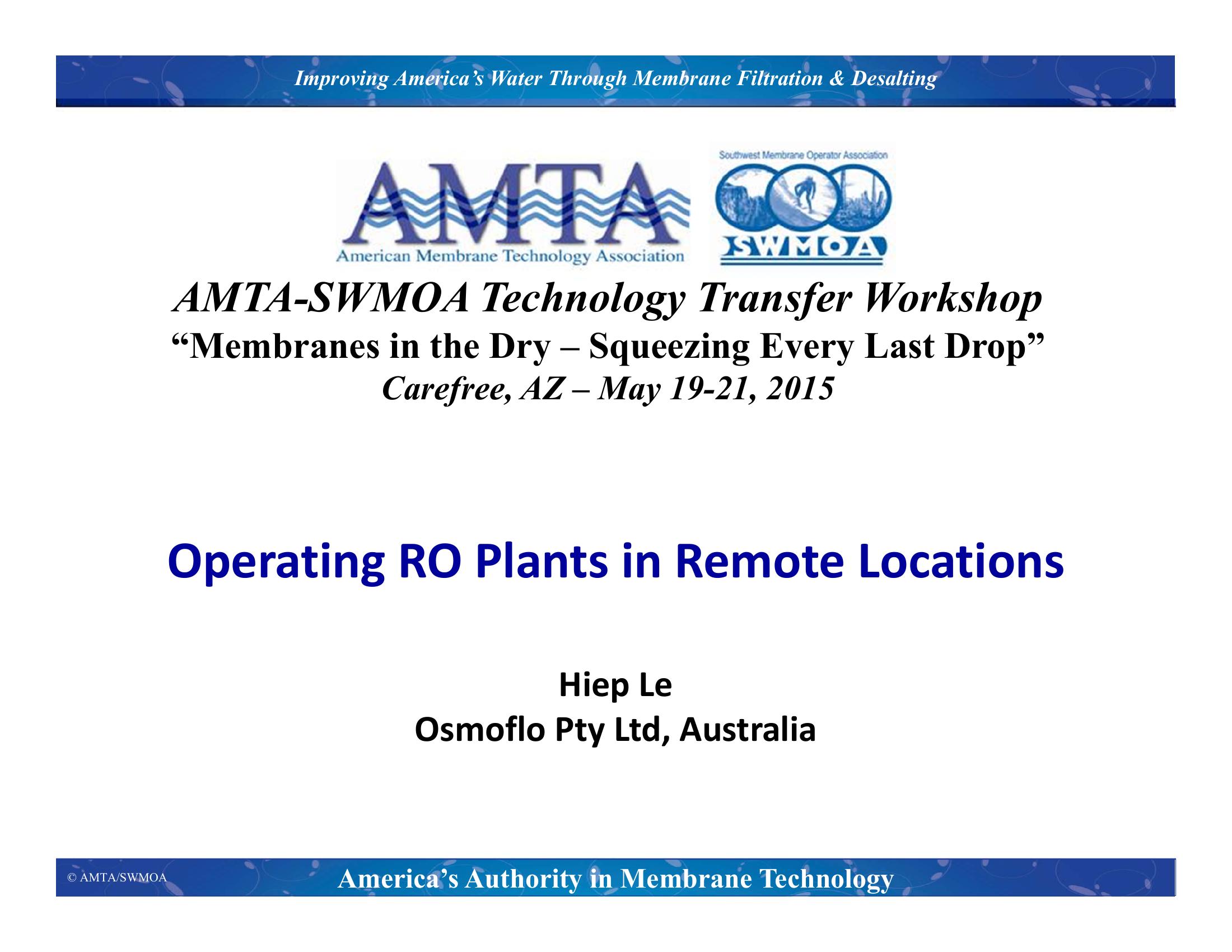Operating RO Plants in Remote Locations