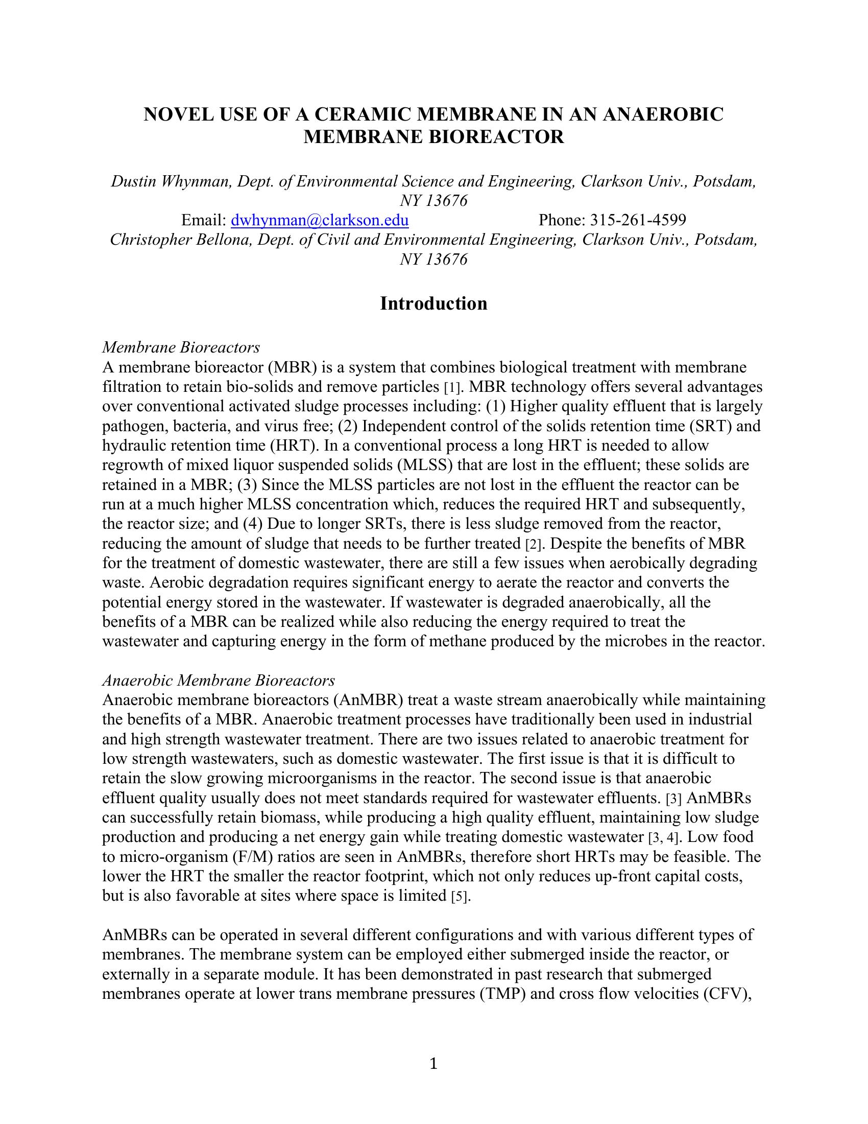 Optimizing an Anaerobic Ceramic Membrane Bioreactor