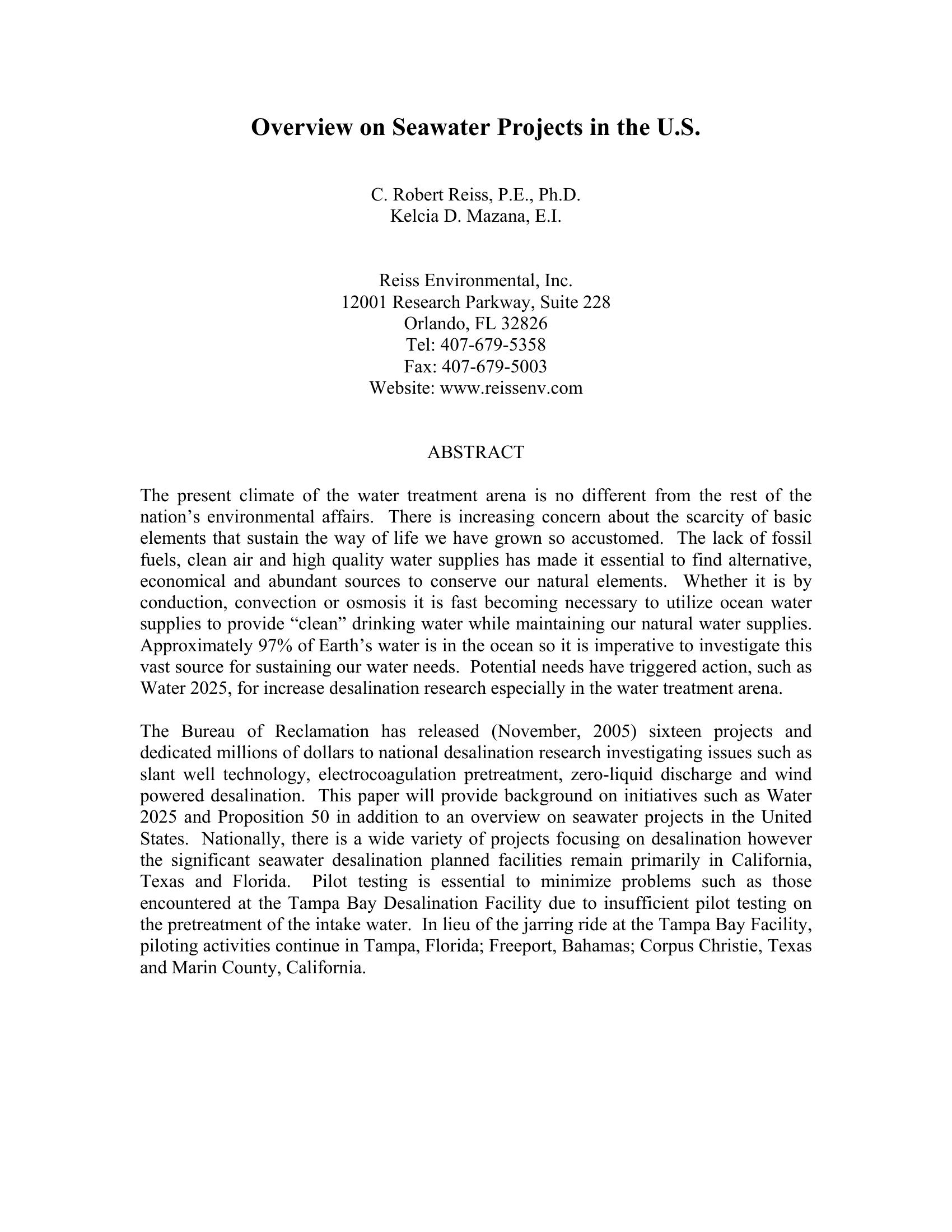 2025 and Proposition 50 in addition to an overview on seawater projects in the United