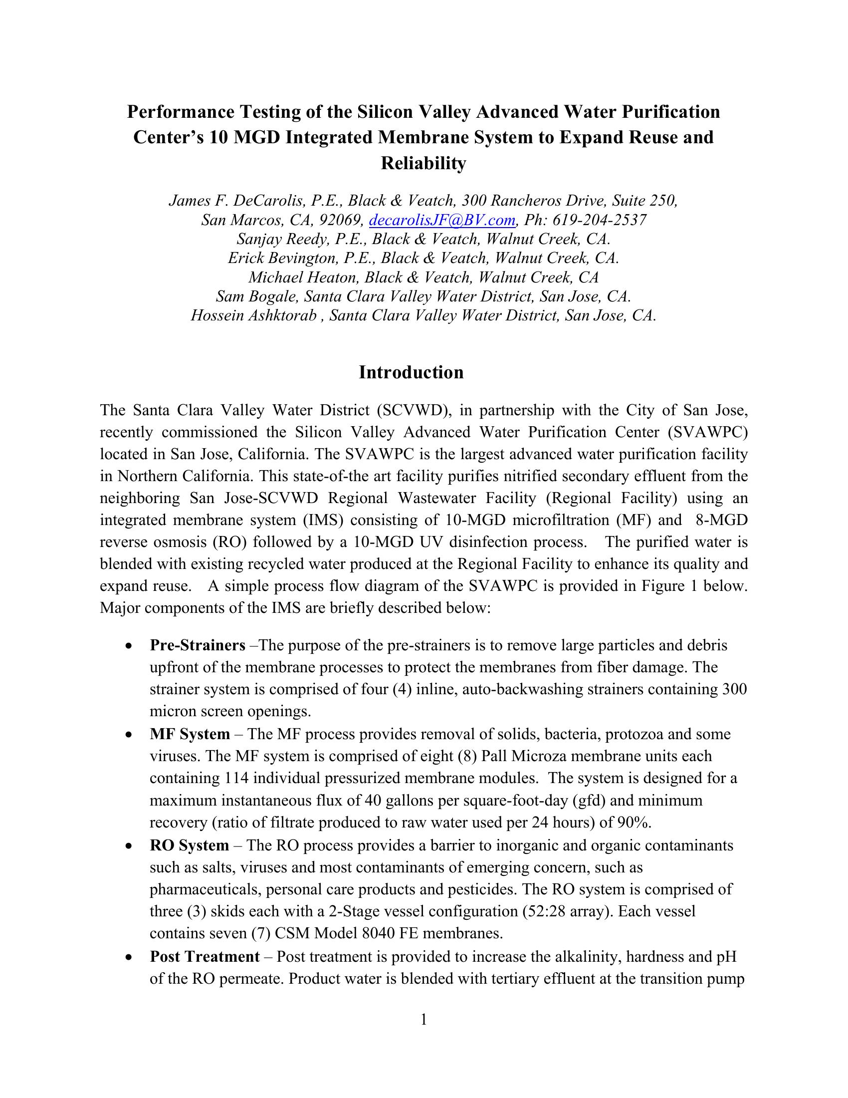 | Keywords | Performance Testing, Reuse of Secondary Effluent, Silicon Valley Advanced Water Purification Center (SVAWPC) |
