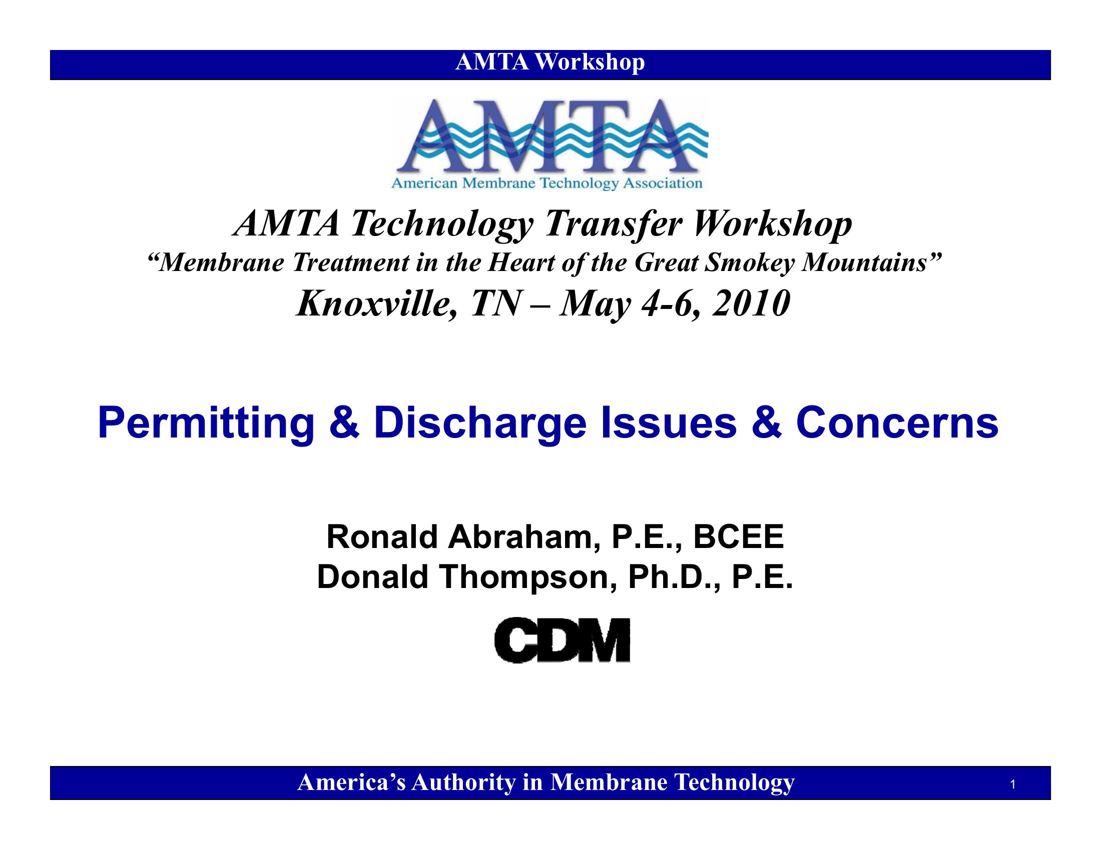 General presentation on microfiltration/ultrafiltration and reverse osmosis municipal applications, capabilities and regulatory requirements.