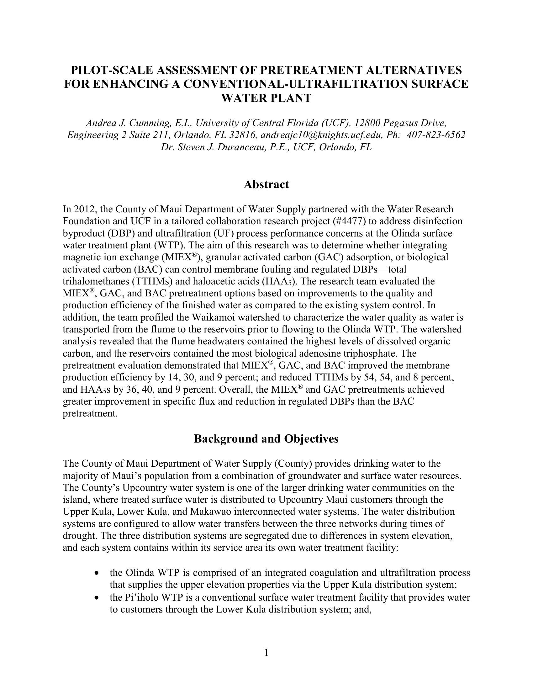 | Keywords | UF Pretreatment Pilot, Disinfection Byproducts, MIEXMaui Dept. of Water Supply, University of Central Florida |