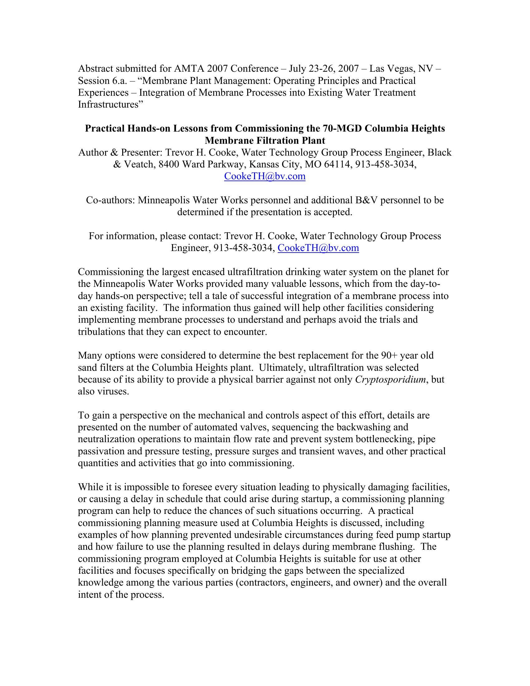 | Keywords | Columbia Heights, microfiltration, lessons learned |