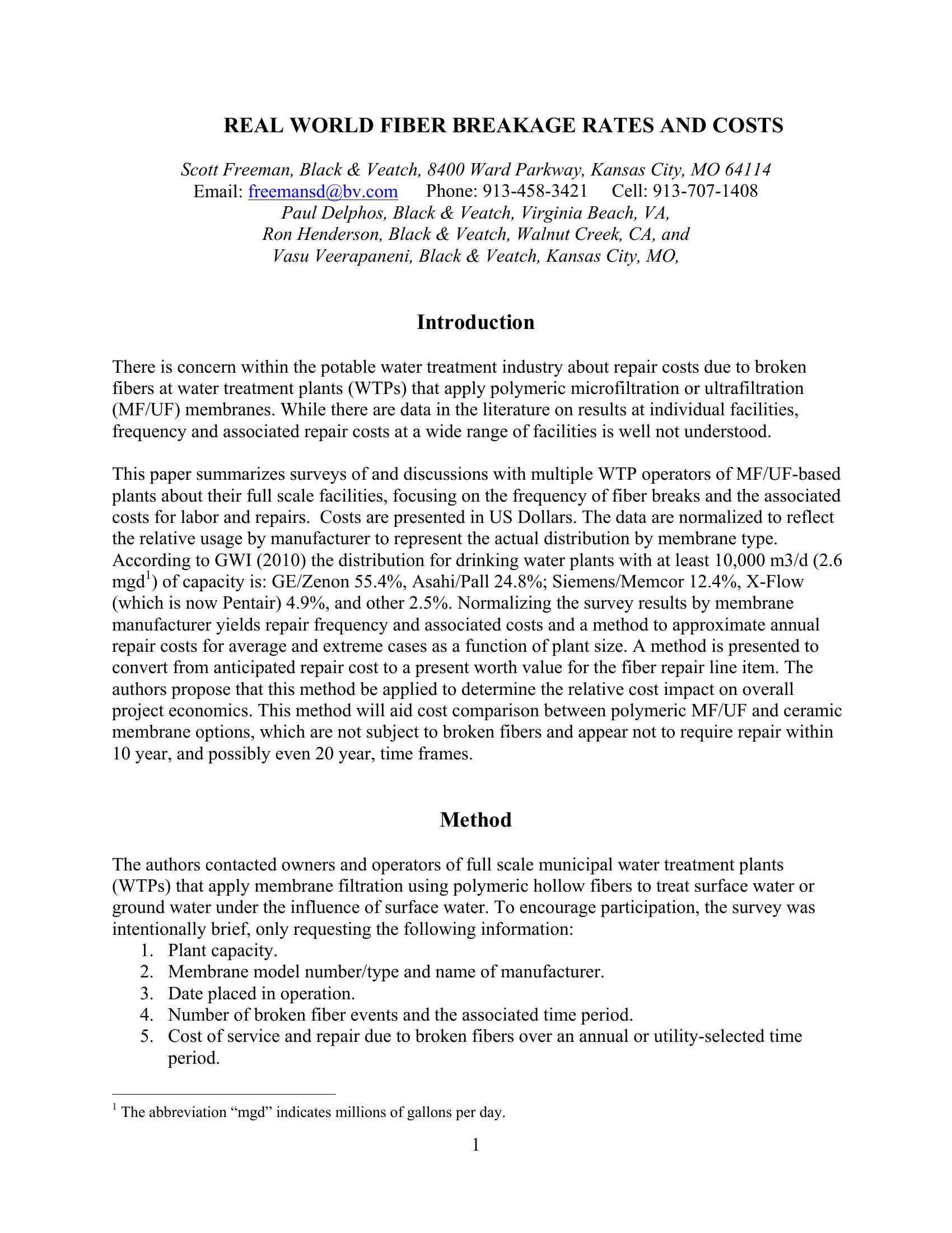 This paper summarizes surveys of and discussions with multiple WTP operators of MF/UF-based plants about their full scale facilities, focusing on the frequency of fiber breaks and the associated costs for labor and repairs. Costs are presented in US Dollars. The data are normalized to reflect the relative usage by manufacturer to represent the actual distribution by membrane type.