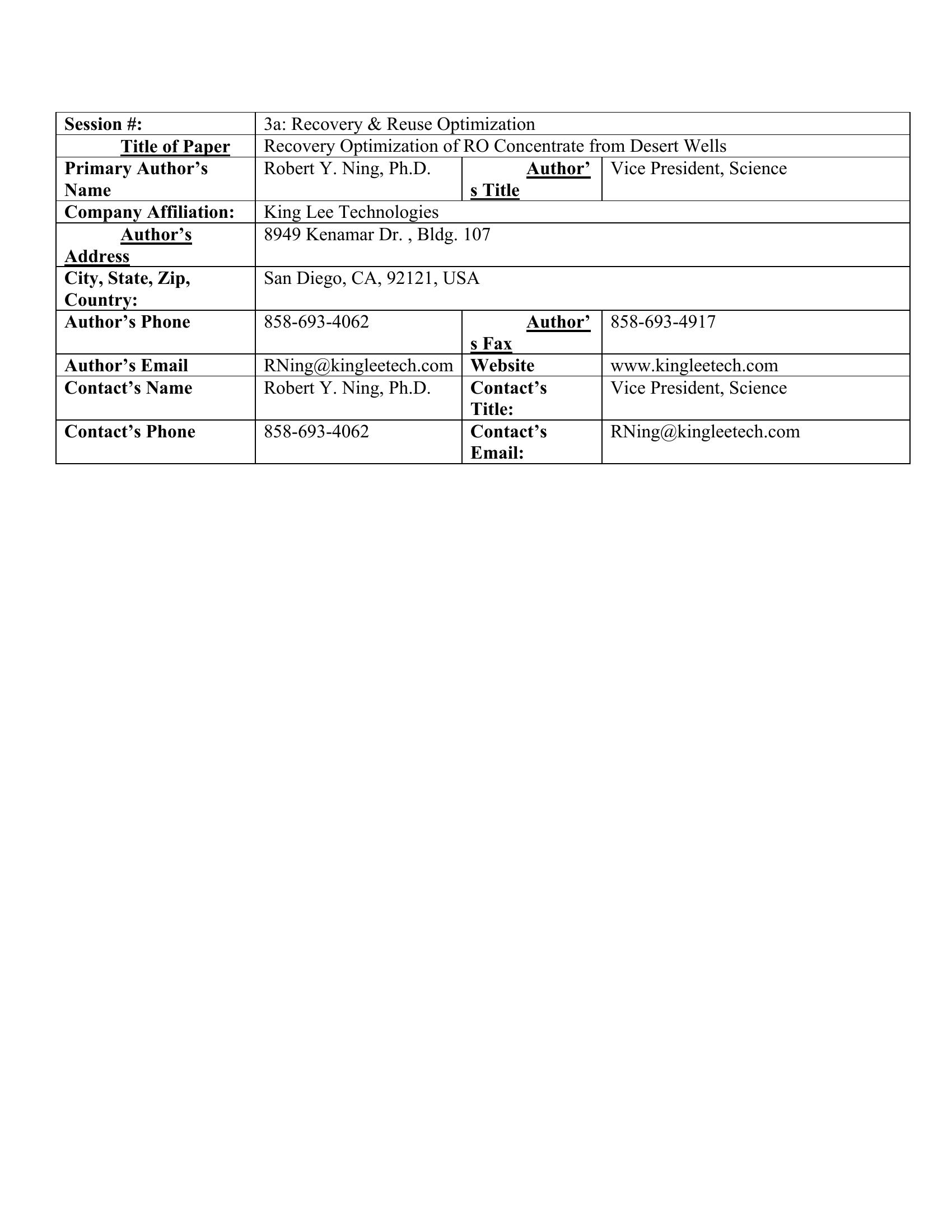 | Keywords | inland RO, high recovery, concentrate disposal |