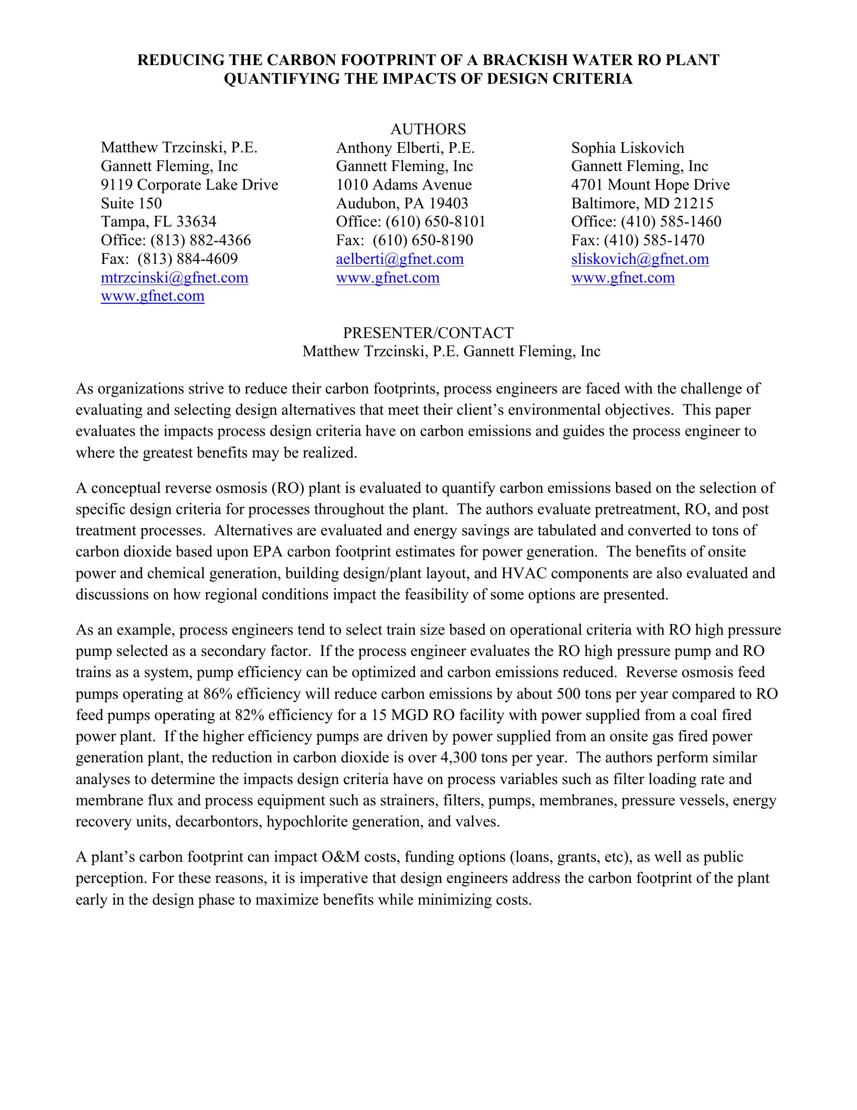 KeywordsCarbon footprint, reverse osmosis, brackish