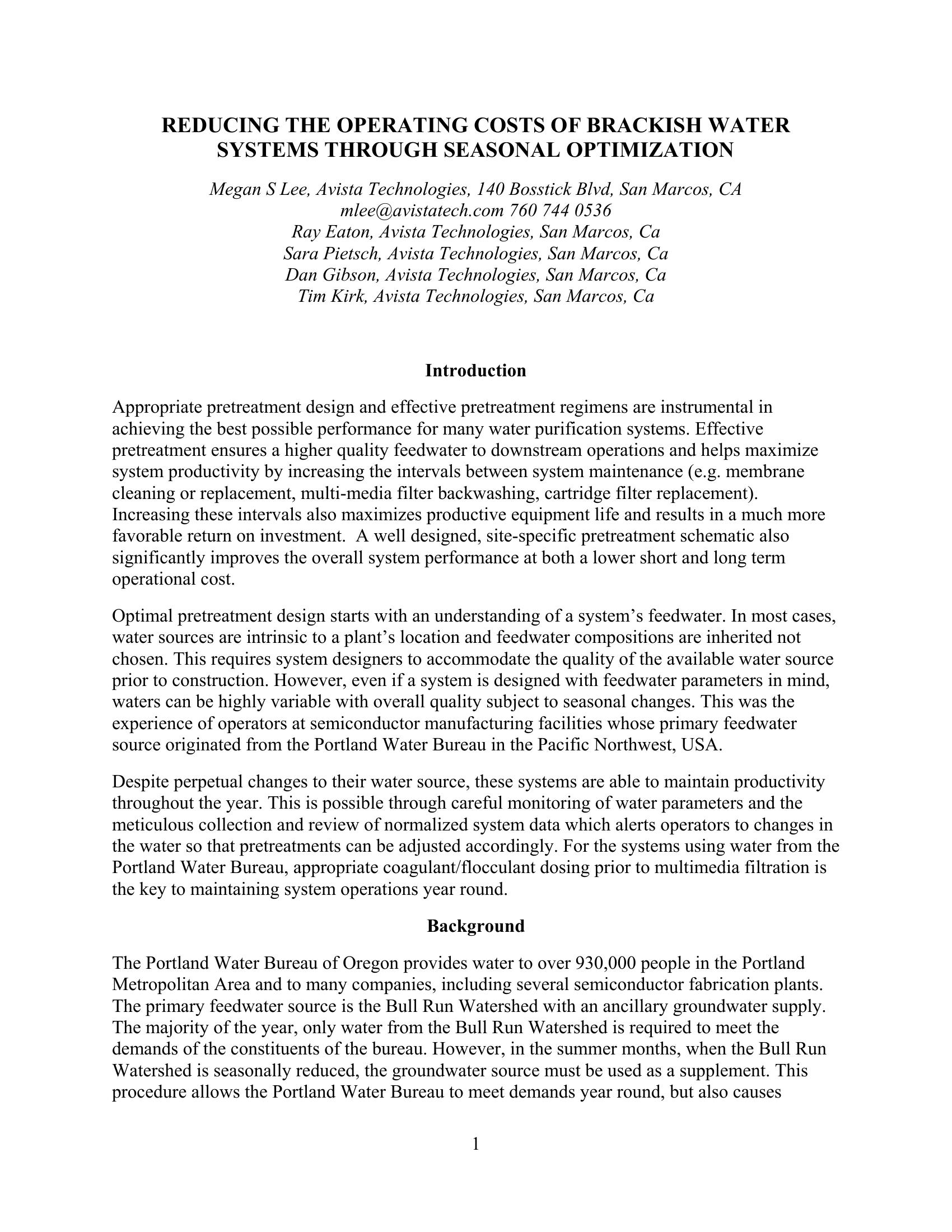 | Keywords | Brackish Water Systems, Portland Water Bureau of Oregon, Semiconductor Fabrication |