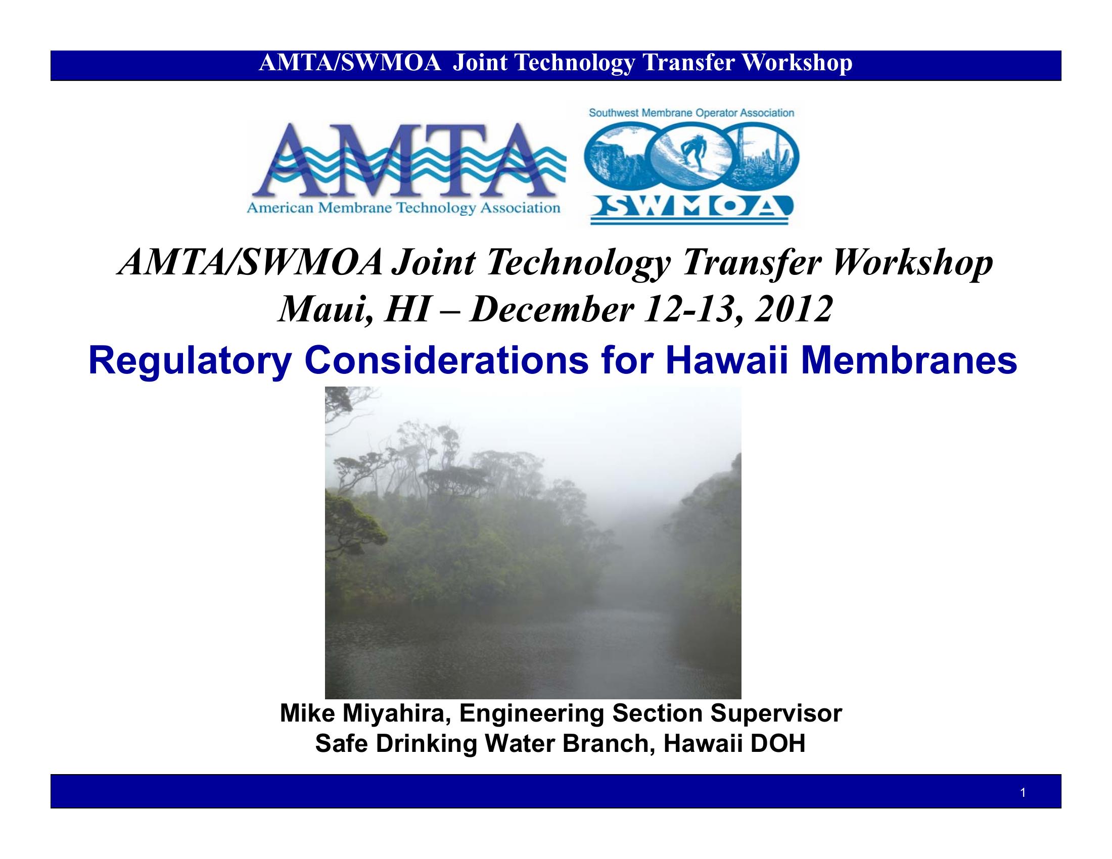 This PowerPoint presentation describes the membrane treatment plants in Hawaii and the Regulatory concerns