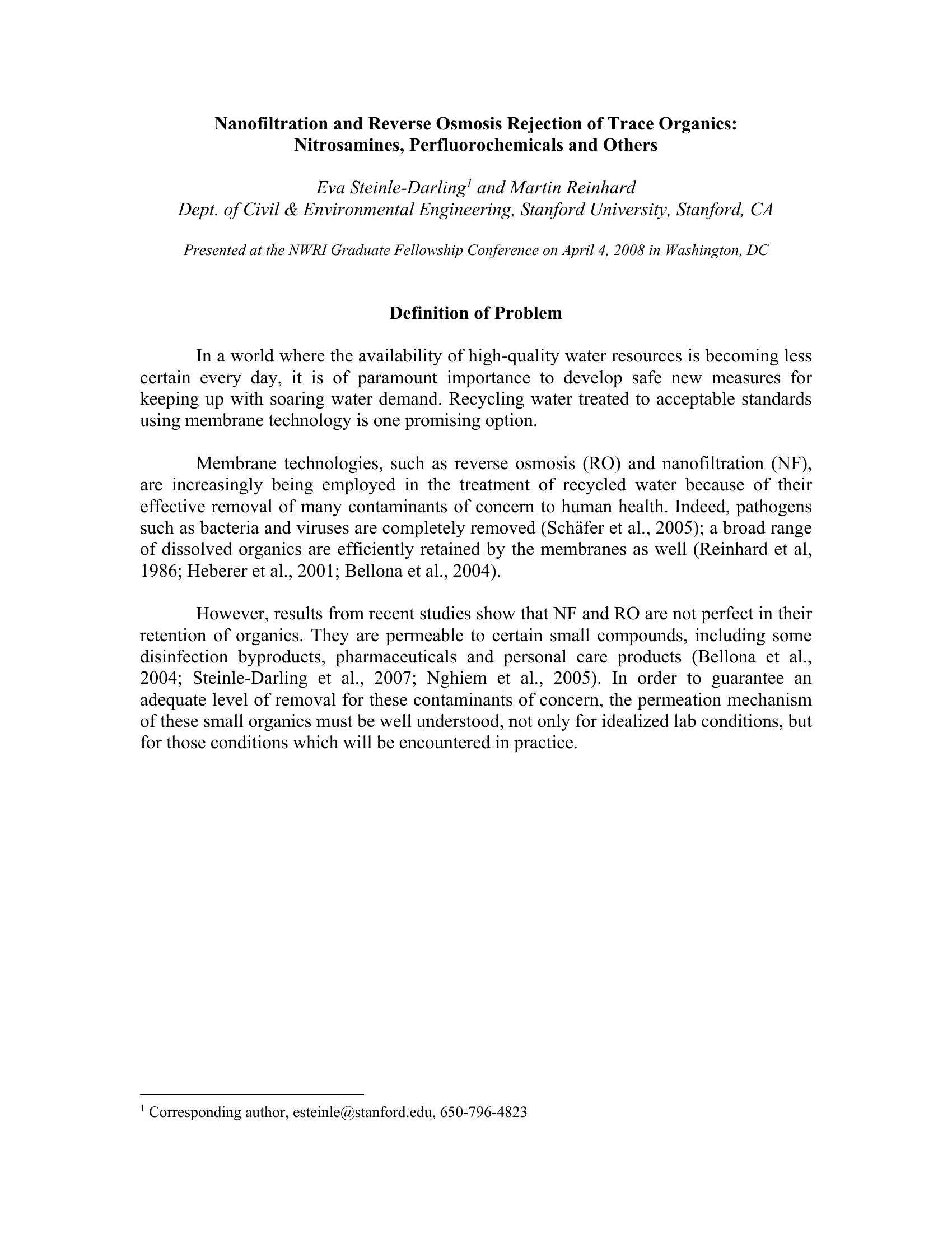 | Keywords | Reverse osmosis rejection, nanofiltration rejection, trace organics. Permeation mechanisms |