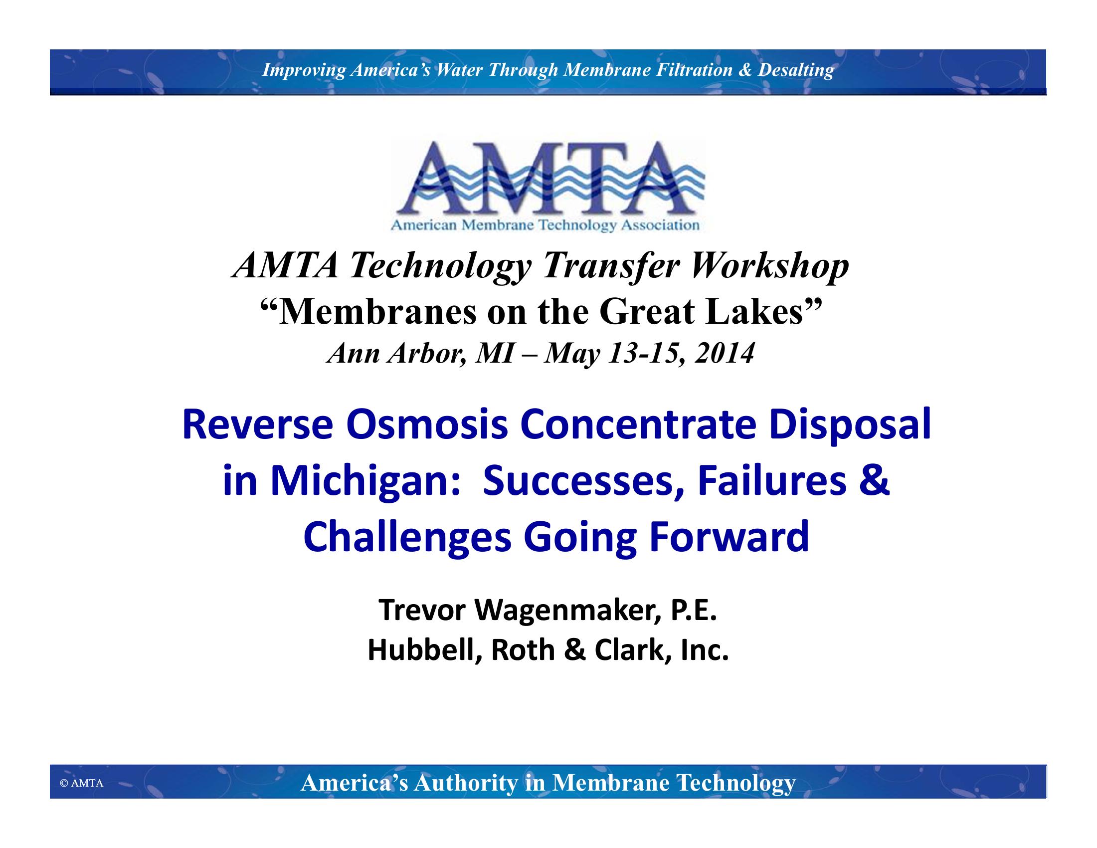 Reverse Osmosis Concentrate Disposal in Michigan: Successes, Failures & Challenges Going Forward