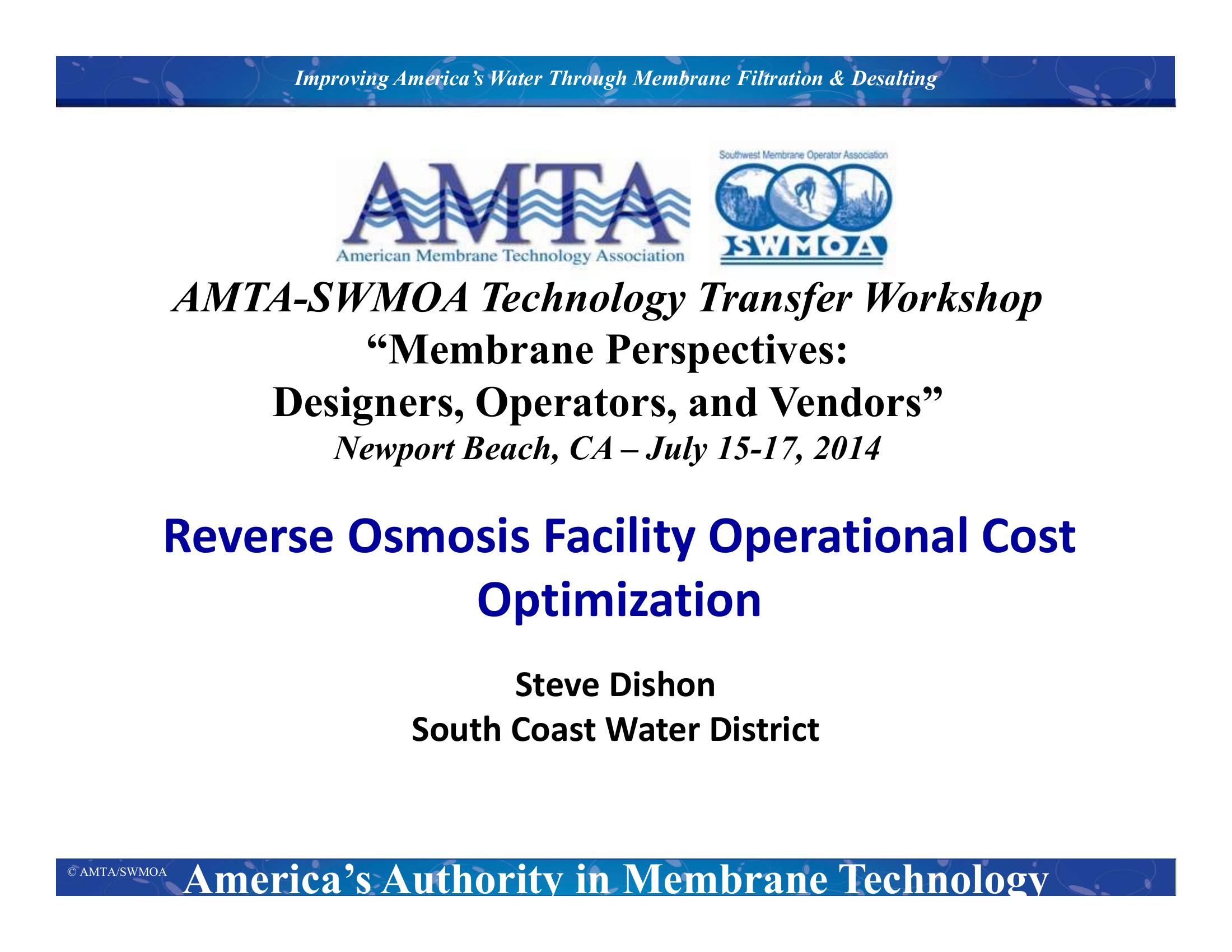 Reverse Osmosis Facility Operational Cost Optimization