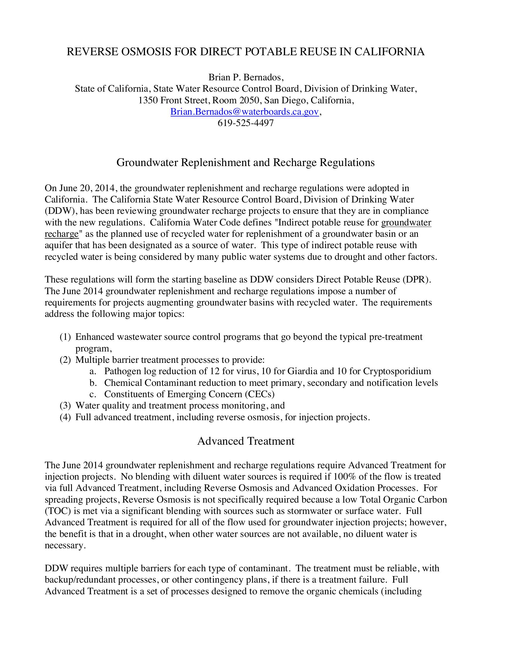 | Keywords | Operations, Research, Permitting, Reverse Osmosis, Regulatory, Reuse |