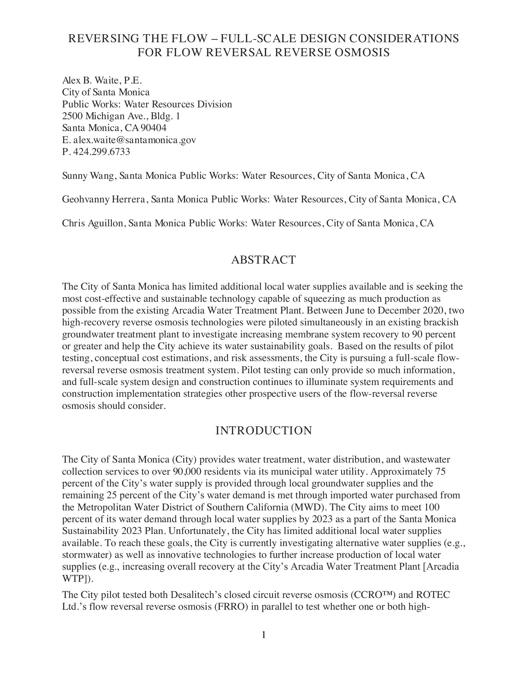 | Keywords | Flow Reversal, Reverse Osmosis, Santa Monica |