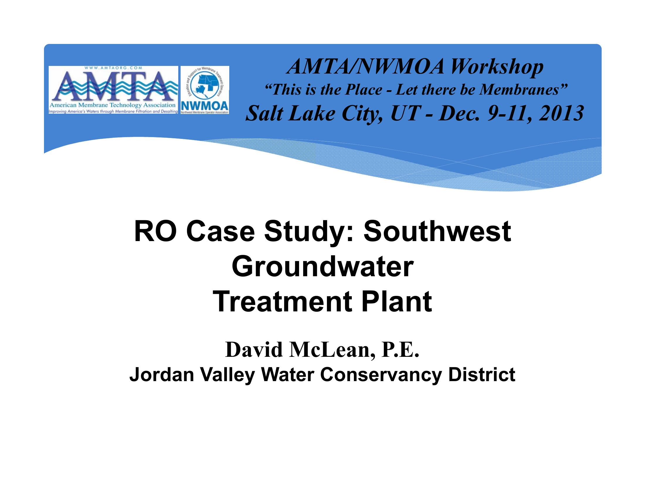 This PowerPoint give a case study of the Southwest Groundwater Treatment Plant that utilizes reverse osmosis technology for the Jordan Valley Water Conservancy District in Utah.