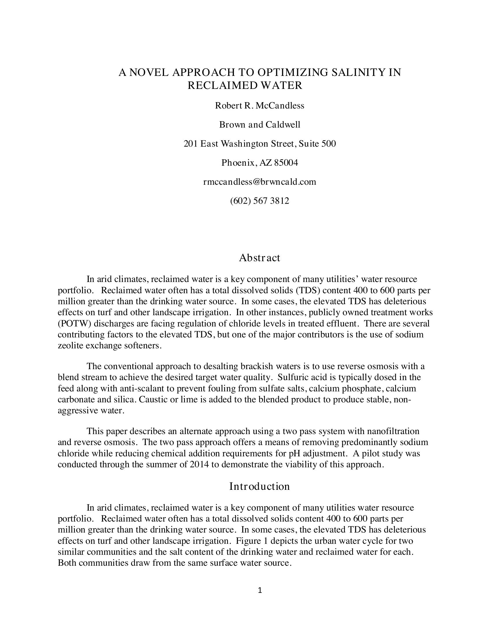 | Keywords | Optimizing salinity, Reclaimed water, pH adjustment |