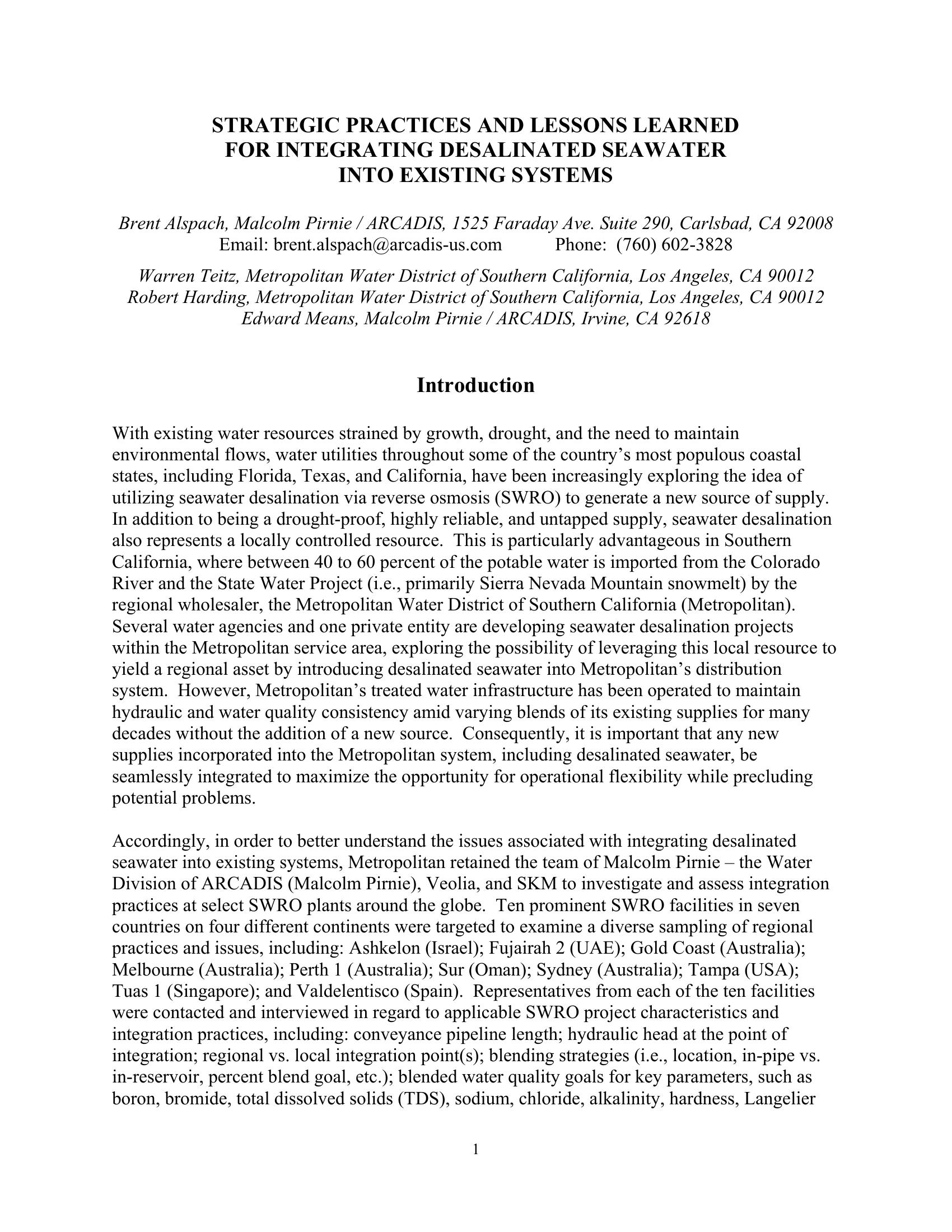 Strategic Practices and Lessons Learned for Integrating Desalinated Seawater into Existing Systems