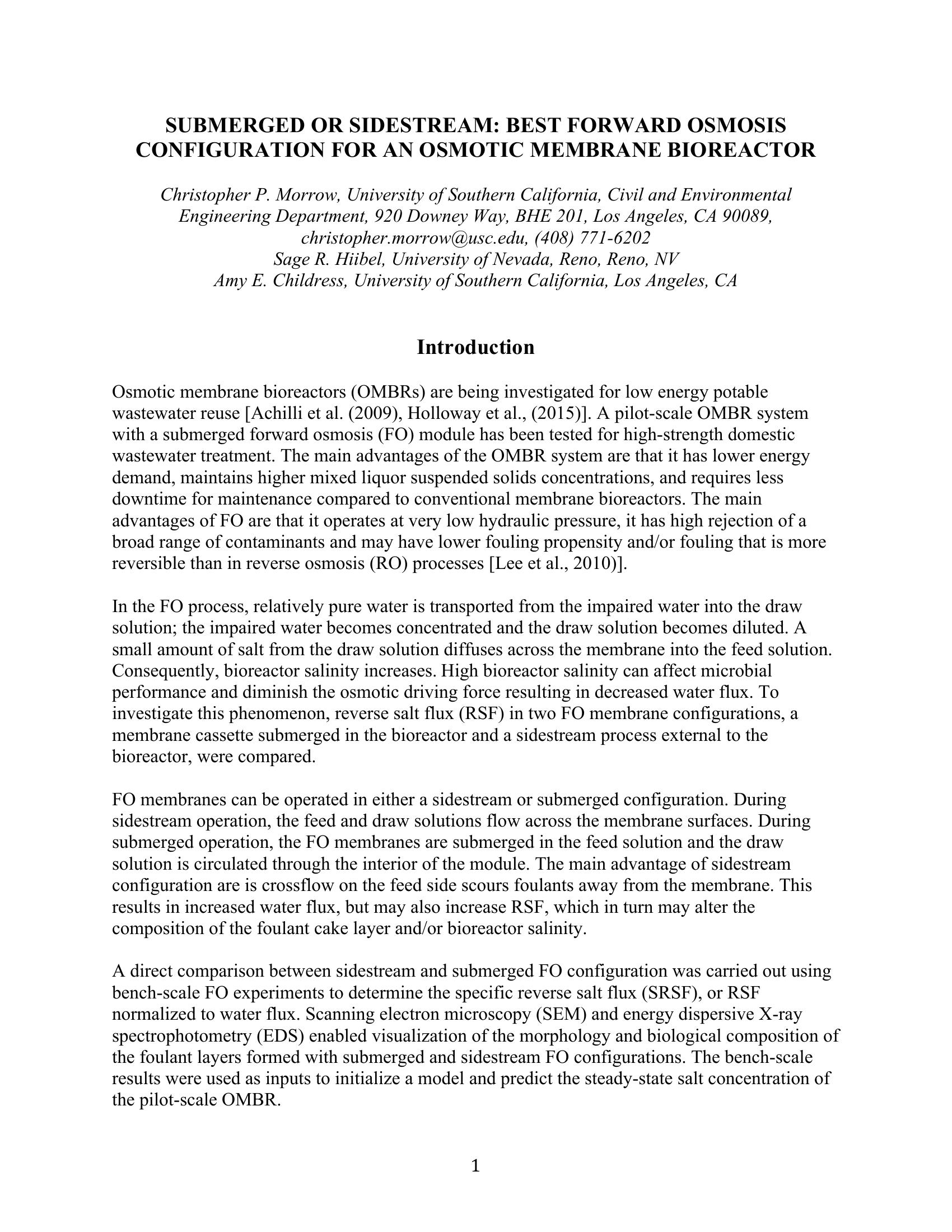 | Keywords | Membrane, Forward Osmosis, MBR, Fouling, Reuse, Osmotic MBR |