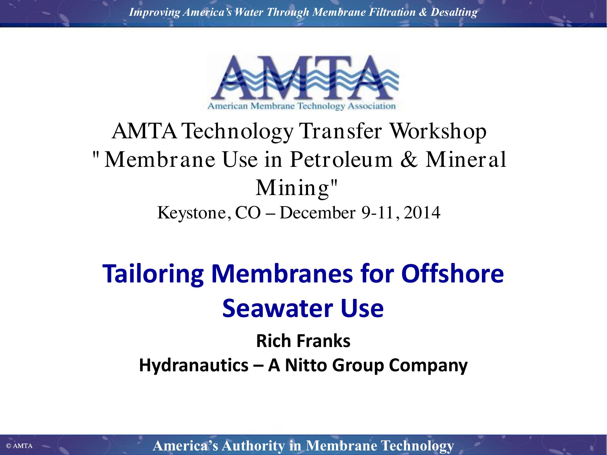 Discusses RO/NF membrane chemistry and design of high sulfate rejection NF membranes. These NF membranes are designed specifically for offshore desalination in O&G production allowing operation at much lower pressures than conventional SWRO.