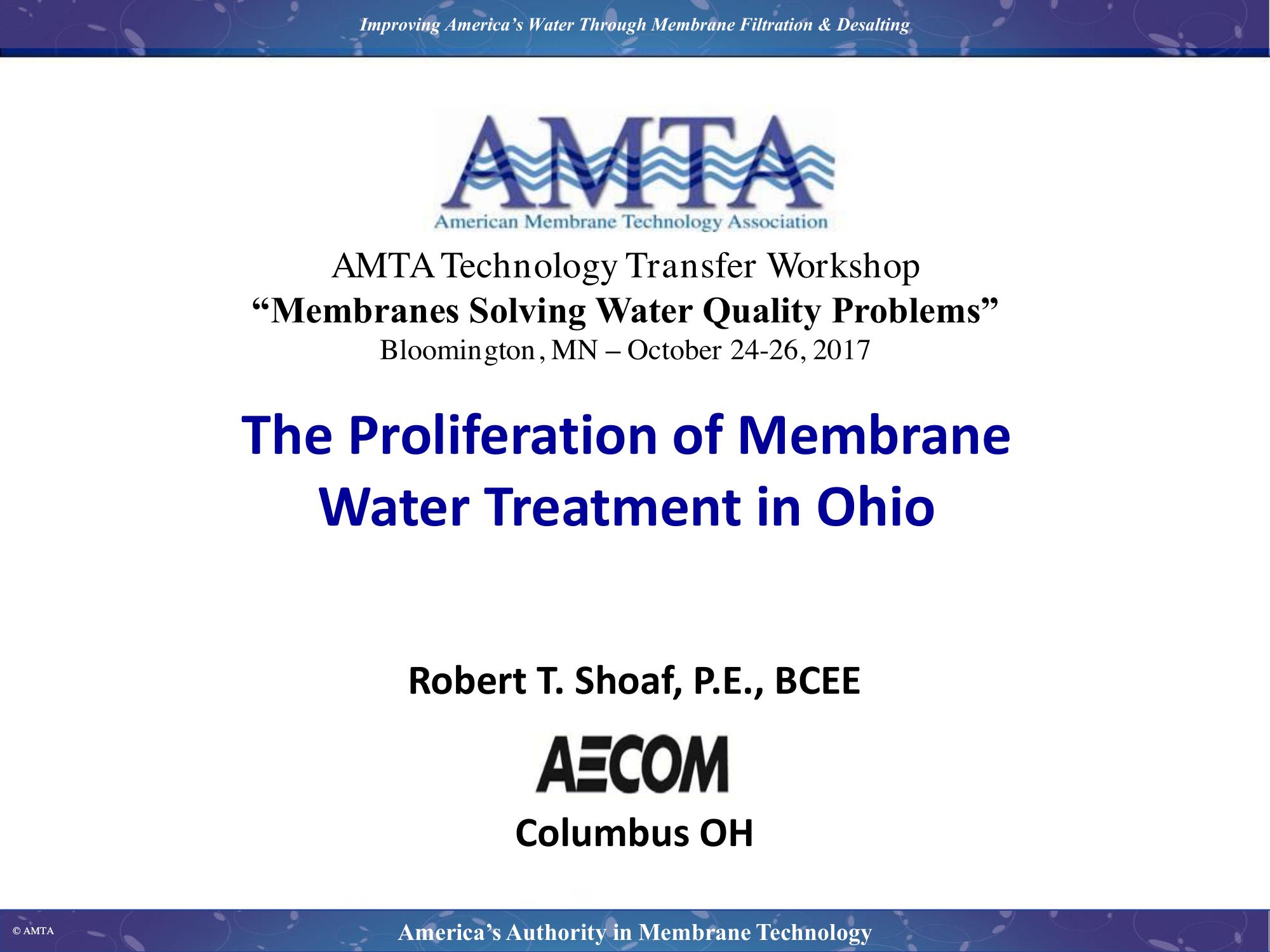 The use of membrane technology for the production of drinking water is becoming more commonplace and more cost-effective every year. Many utilities are converting to membrane filtration to help fortify their facilities for current or future regulations. The author has been fortunate to at the front lines of the membrane wave in Ohio – having participated in the design of approximately 75% of all membrane water treatment plants in Ohio. The objective of this presentation is to highlight the advantages of utilizing membranes utilizing real life case studies of approximately 20 water treatment facilities in Ohio where membranes were installed instead of conventional treatment. Water quality / goals and treatment process selected for each will be discussed – along with a lesson learned from each project. Unique concentrate disposal techniques on several of the projects will be discussed – along with a comparison of the applicable discharge regulations throughout the Midwest.